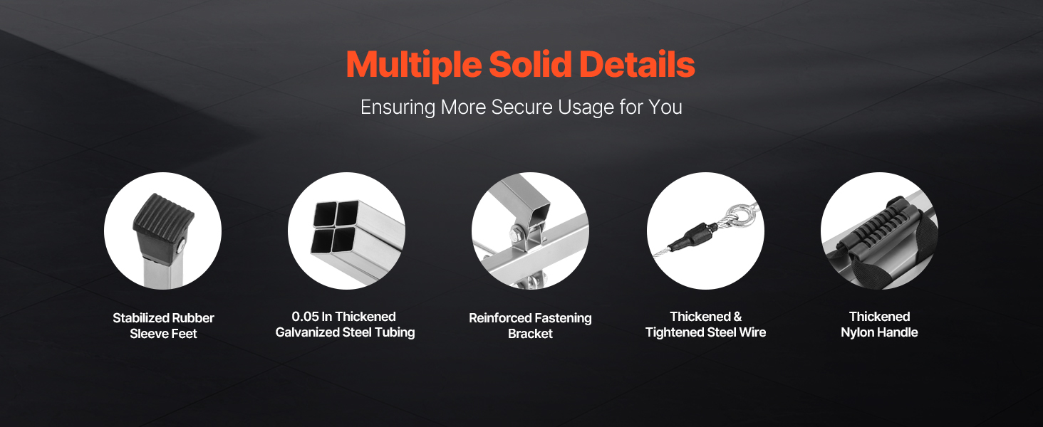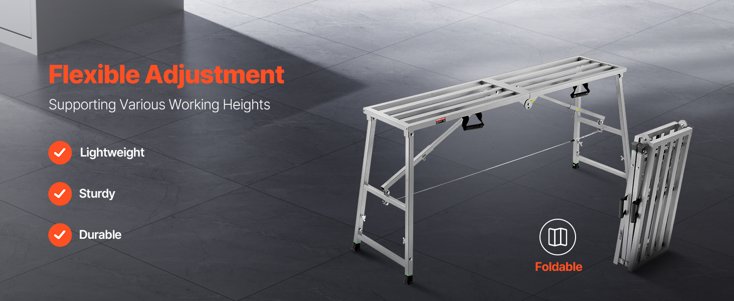 Prenosné lešenie VEVOR je navrhnuté na jednoduchú prepravu, takže je ideálne na všetky projekty na stavenisku alebo na domáce úpravy pre domácich majstrov. Jeho funkcia rýchleho zloženia šetrí čas, pretože vám umožní ho bez námahy premiestniť a uskladniť.