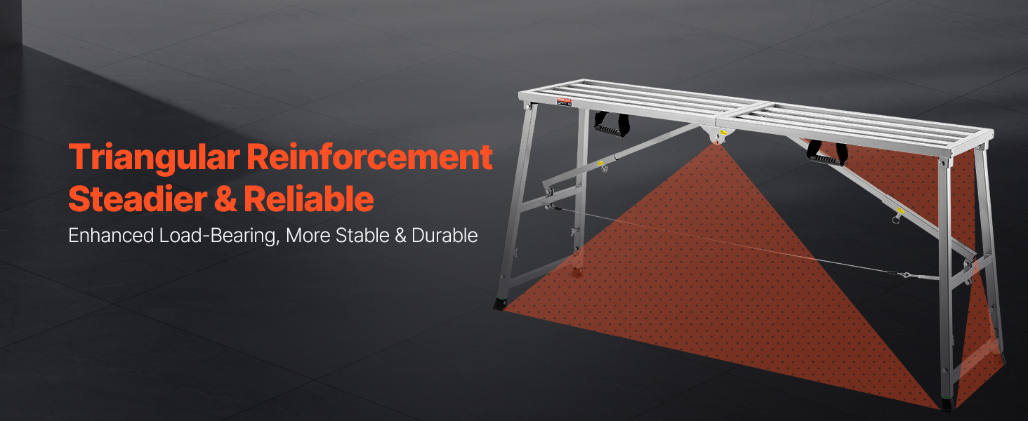 Pevná trojuholníková konštrukcia maximalizuje stabilitu a minimalizuje nežiaduci pohyb, čím zabezpečuje bezpečnú plošinu počas vašej práce. To znamená, že sa môžete sústrediť na prácu bez obáv z nestability alebo otrasov.