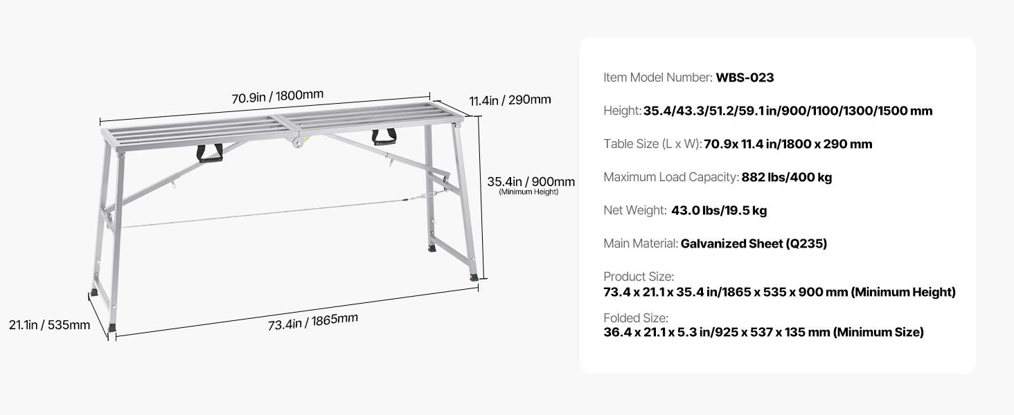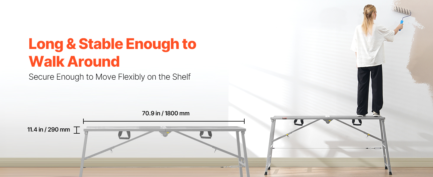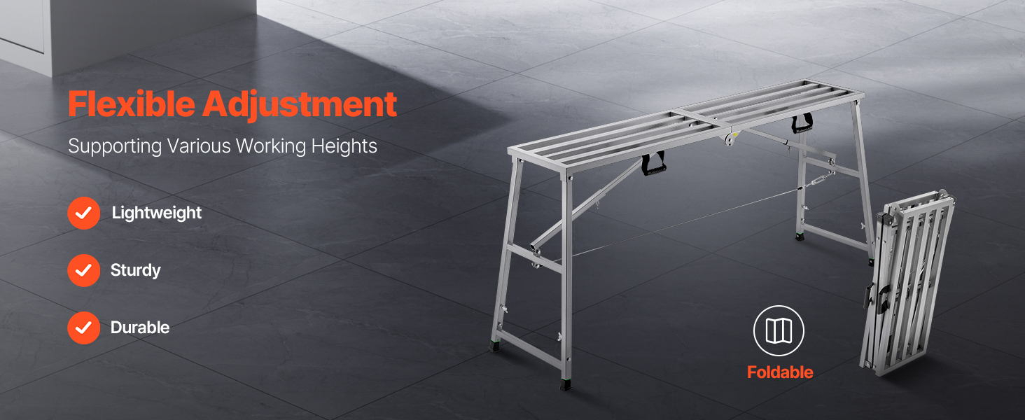Prenosné lešenie VEVOR je navrhnuté na jednoduchú prepravu, takže je ideálne na všetky projekty na stavenisku alebo na domáce úpravy pre domácich majstrov. Jeho funkcia rýchleho zloženia šetrí čas, pretože vám umožní ho bez námahy premiestniť a uskladniť.