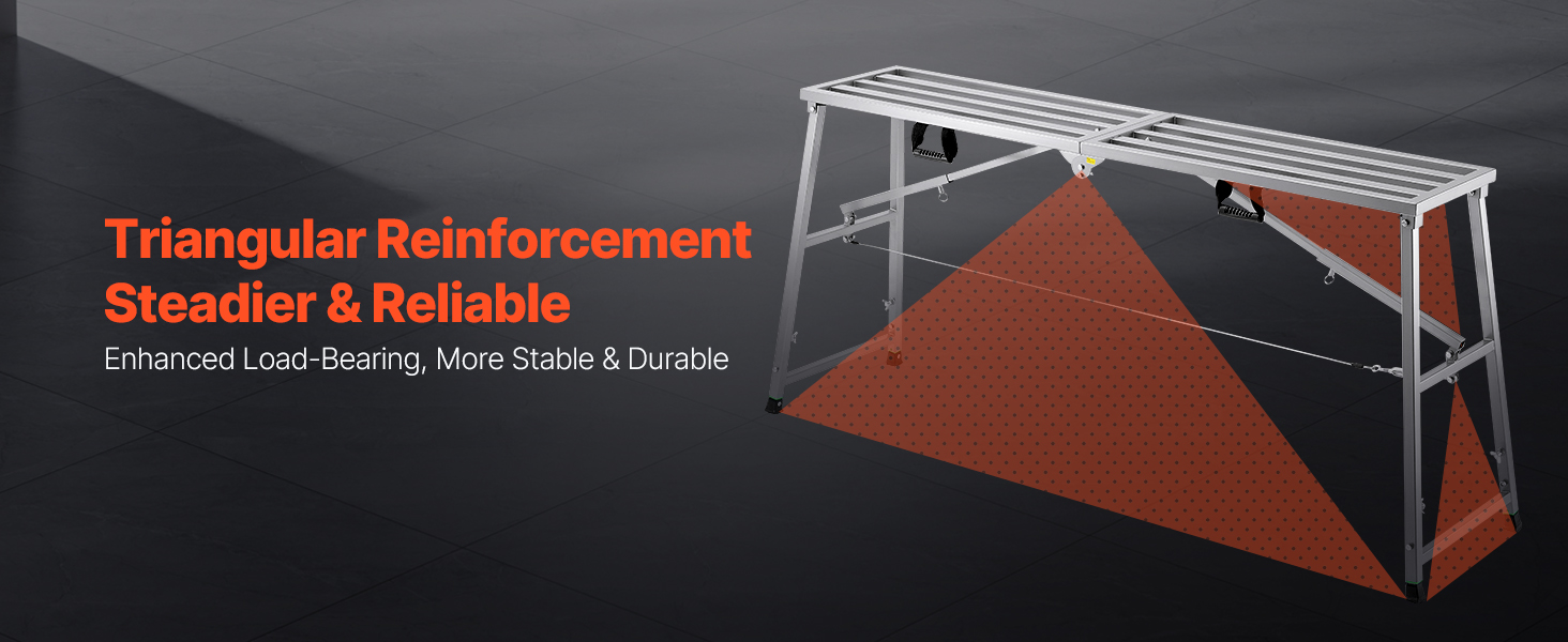 Pevná trojuholníková konštrukcia maximalizuje stabilitu a minimalizuje nežiaduci pohyb, čím zabezpečuje bezpečnú plošinu počas vašej práce. To znamená, že sa môžete sústrediť na prácu bez obáv z nestability alebo otrasov.
