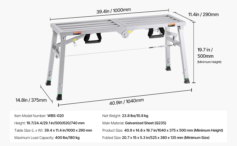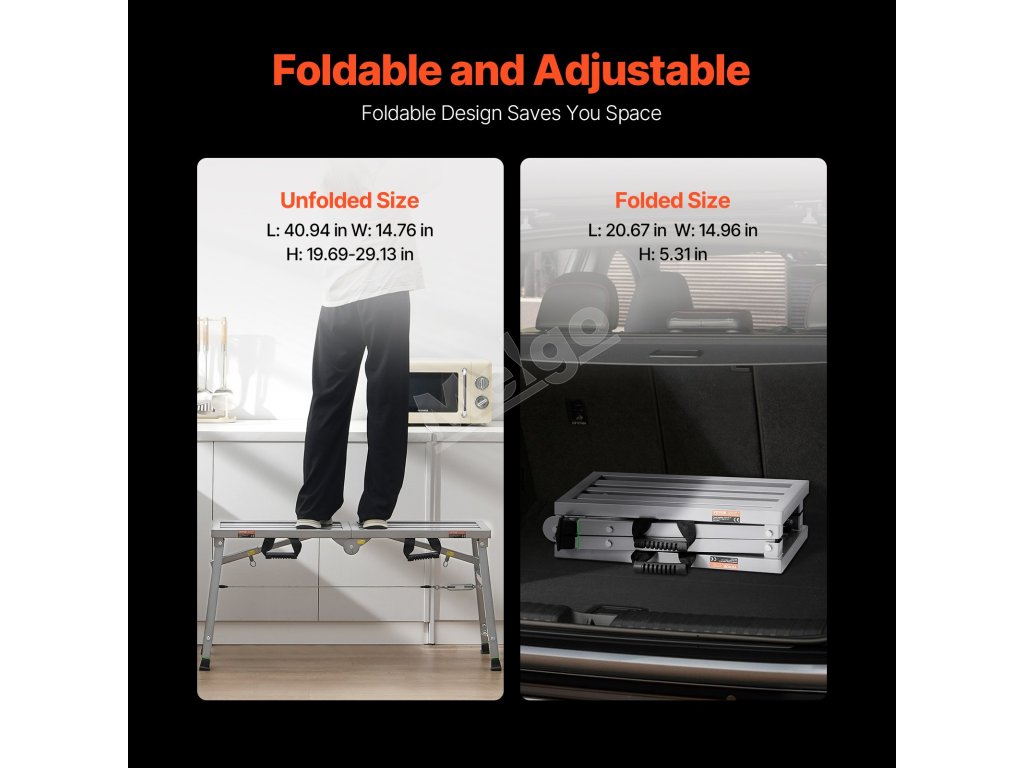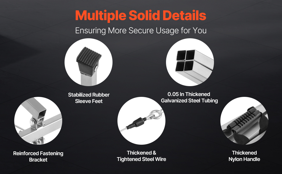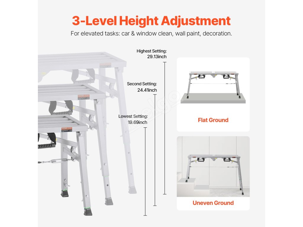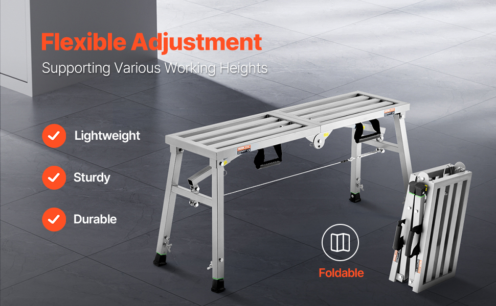 Prenosné lešenie VEVOR je navrhnuté na jednoduchú prepravu, takže je ideálne na všetky projekty na stavenisku alebo na domáce úpravy pre domácich majstrov. Jeho funkcia rýchleho zloženia šetrí čas, pretože vám umožní ho bez námahy premiestniť a uskladniť.