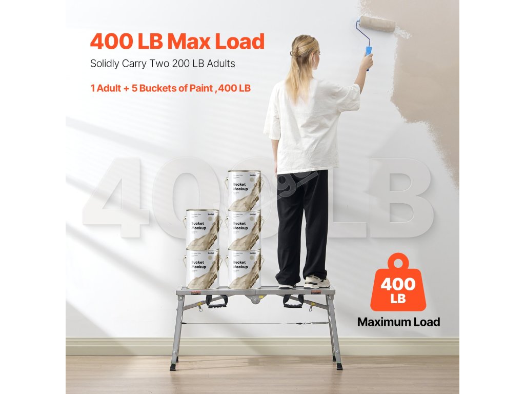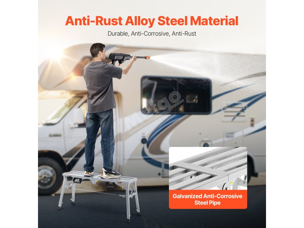 Vysokopevnostný rám z nehrdzavejúcej ocele poskytuje stabilnú polstrovanú plošinu s nosnosťou až 400 kg, vďaka čomu zvládne rôzne úlohy, od maľovania až po údržbu.