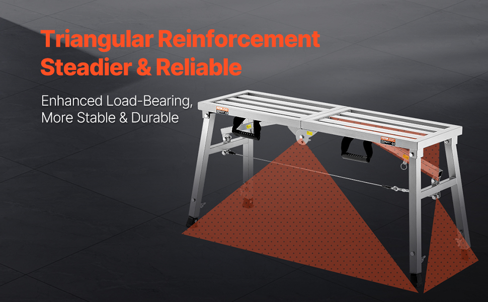 Pevná trojuholníková konštrukcia maximalizuje stabilitu a minimalizuje nežiaduci pohyb, čím zabezpečuje bezpečnú plošinu počas vašej práce. To znamená, že sa môžete sústrediť na prácu bez obáv z nestability alebo otrasov.