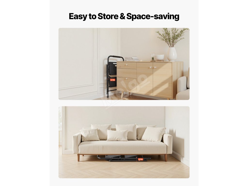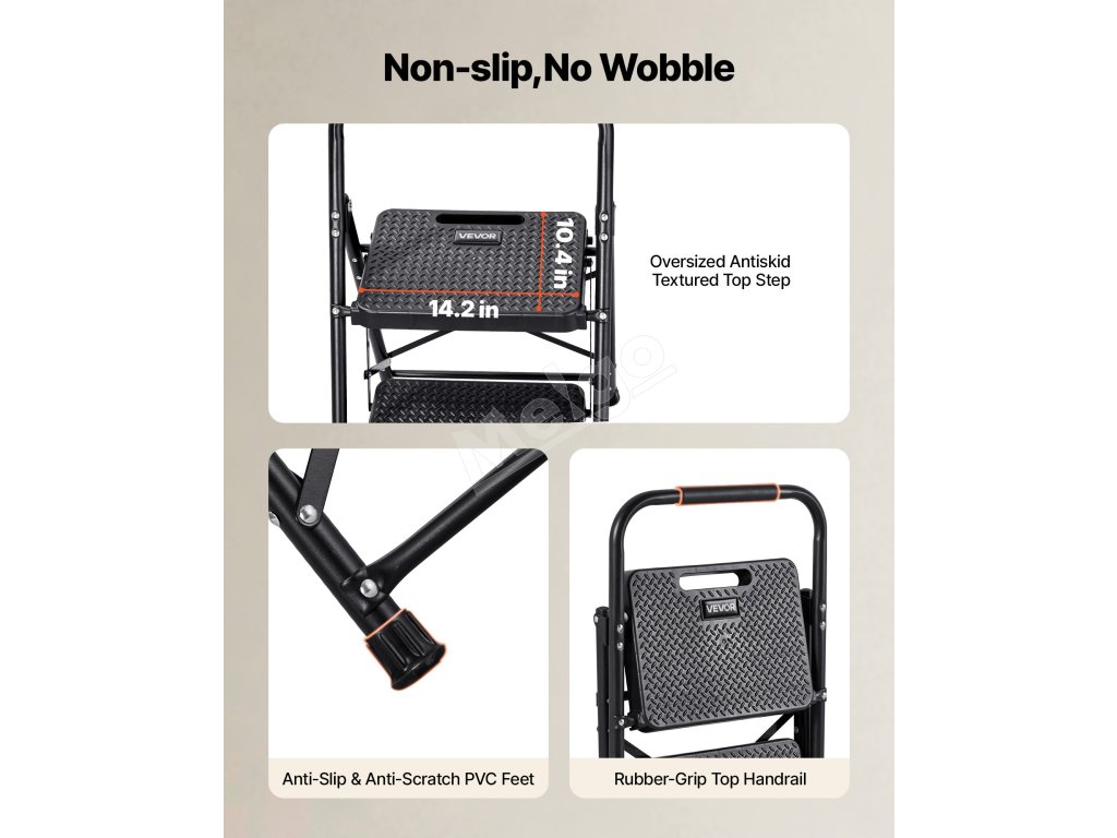 Tento kompaktný rebrík je vhodný na domáce opravy, upratovanie a organizovanie a poskytuje stabilnú, protišmykovú oporu, vďaka čomu sa ľahko dostanete do vysokých priestorov.
