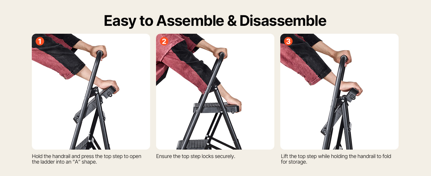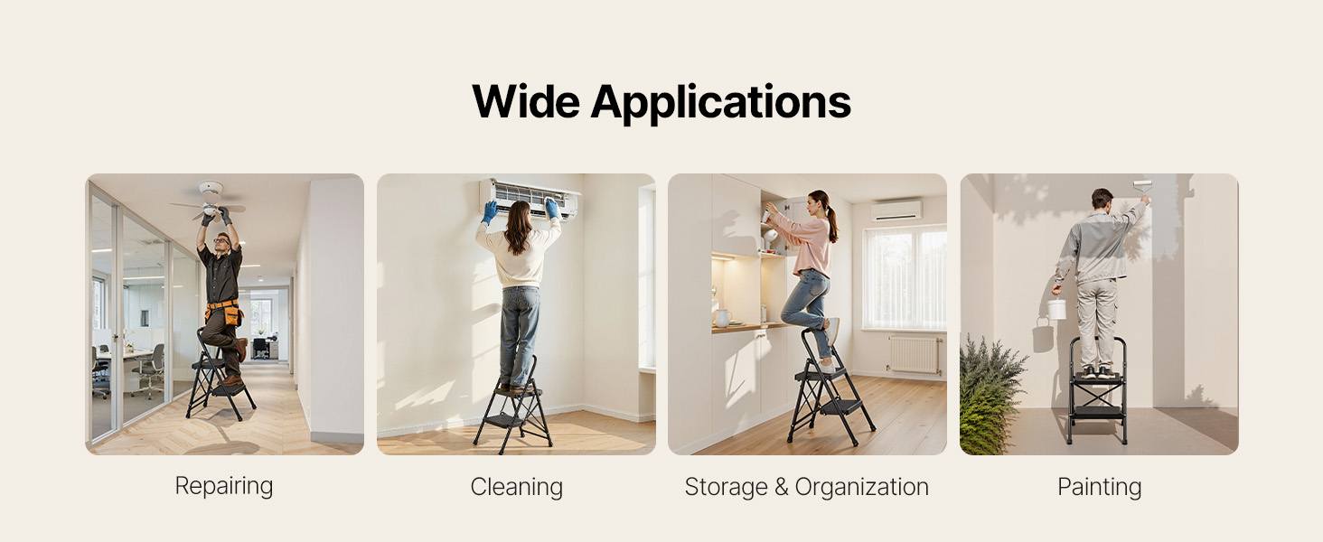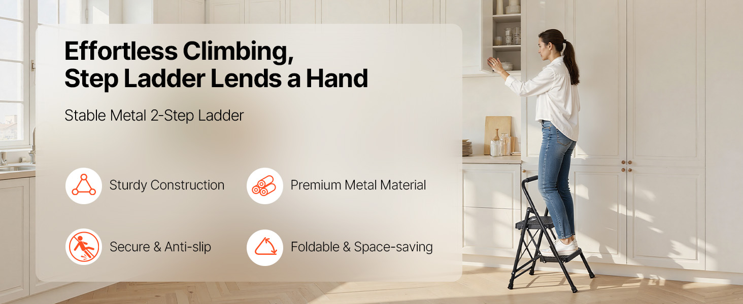 Tento kuchynský rebrík je vybavený nadrozmernými protiskluzovými madlami a protiskluzovými nožičkami. Je navrhnutý tak, aby bol stabilný, a má tenký skladací dizajn pre ľahké skladovanie. Pracujte rýchlejšie a s istotou pri upratovaní, maľovaní a inštalácii.