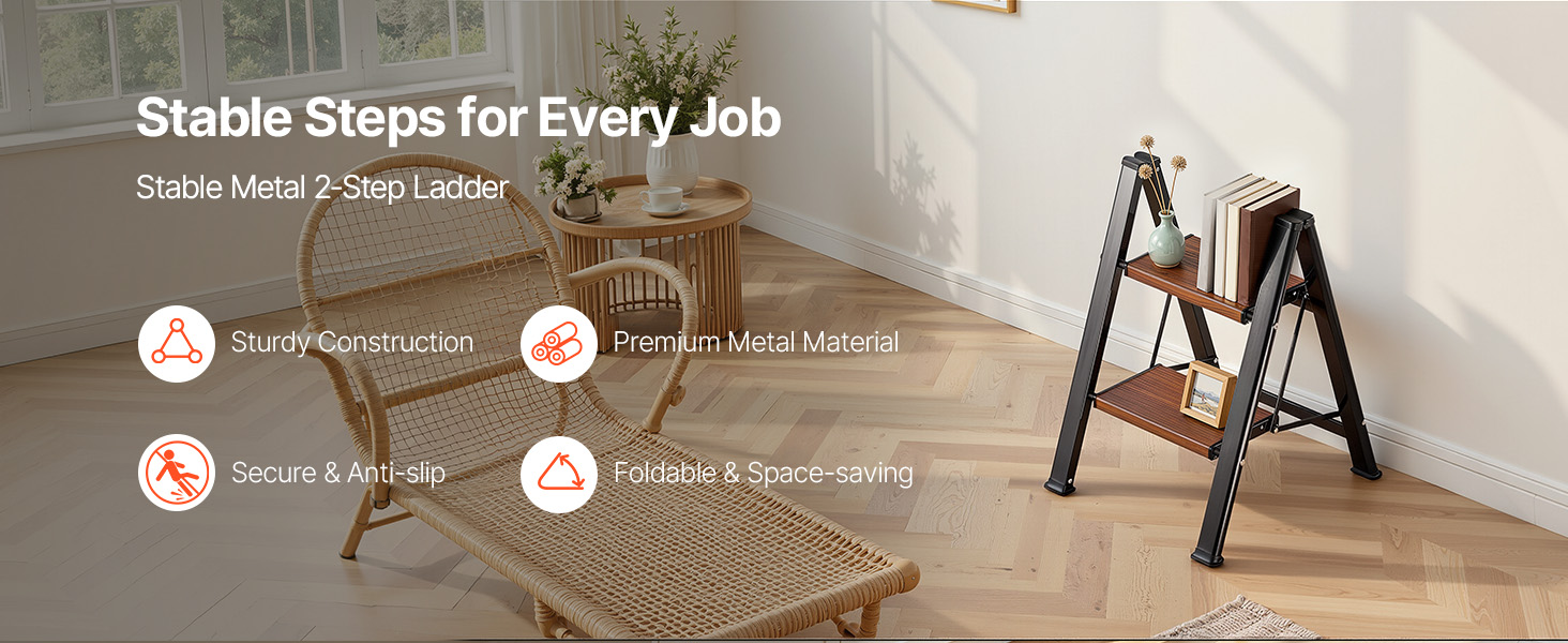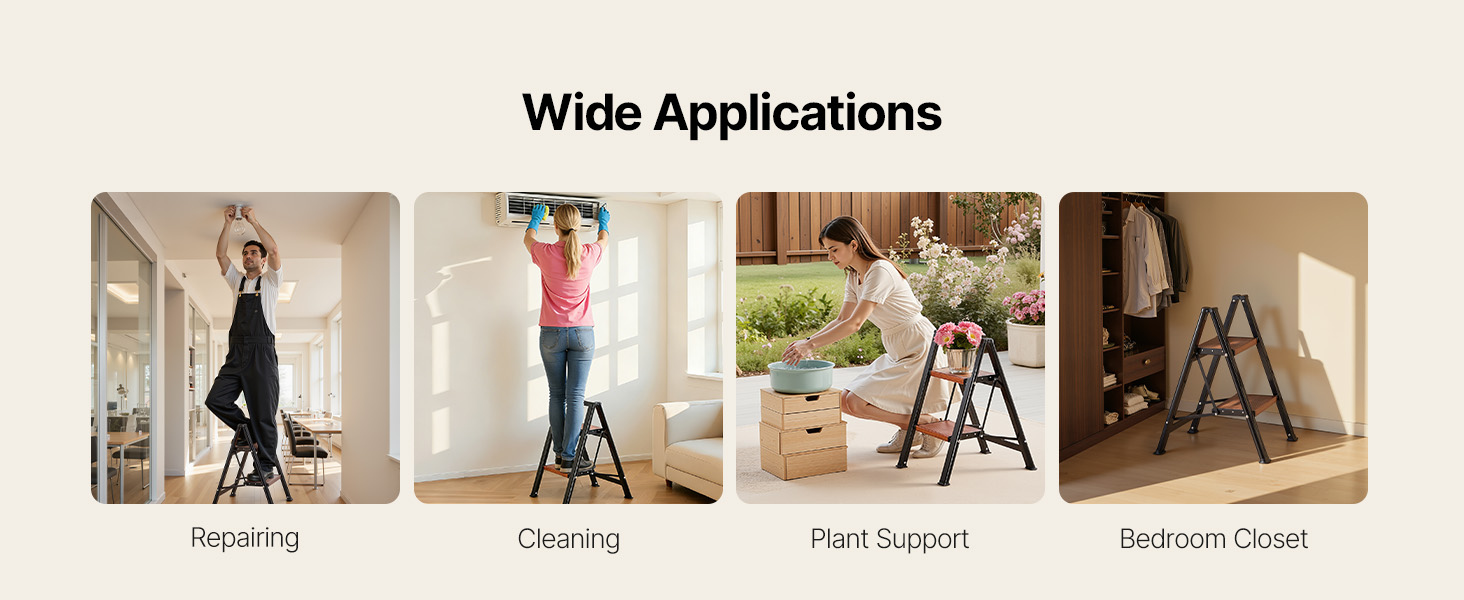 Tento kompaktný rebrík je vhodný na domáce opravy, upratovanie a organizovanie a poskytuje stabilnú, protišmykovú oporu, vďaka čomu sa ľahko dostanete do vysokých priestorov.