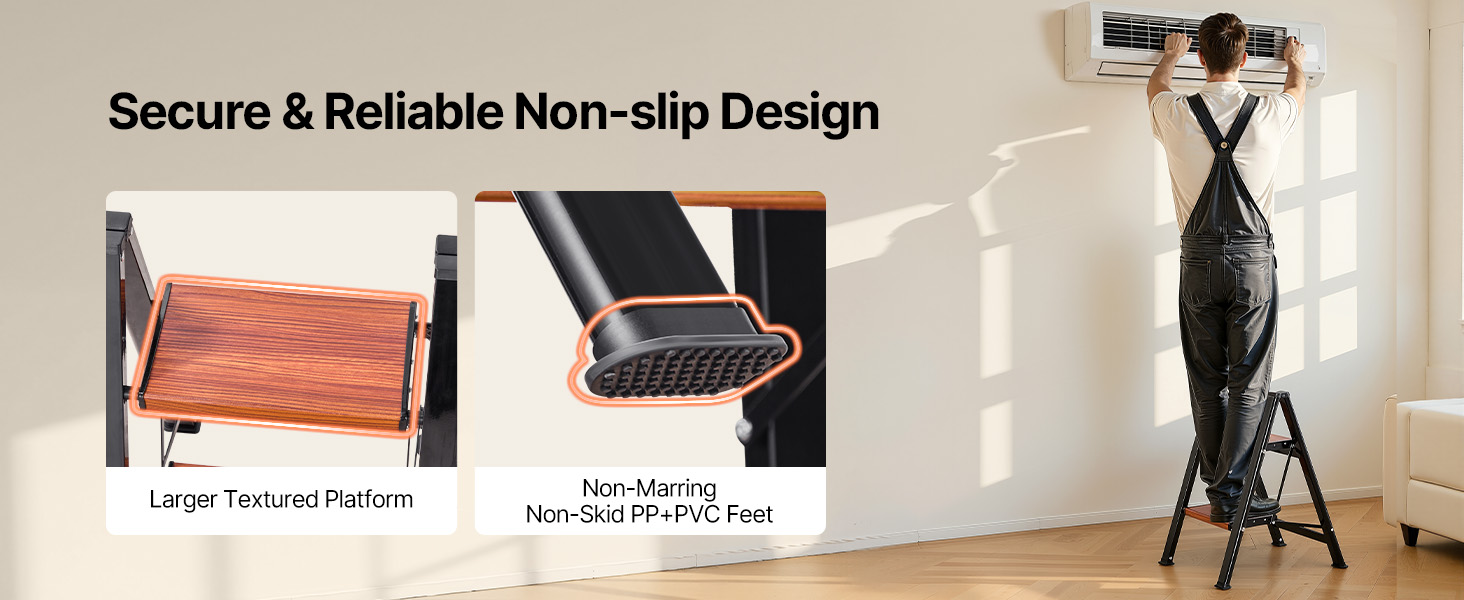 Tento kuchynský rebrík je vybavený nadrozmernými protiskluzovými madlami a protiskluzovými nožičkami. Je navrhnutý tak, aby bol stabilný, a má tenký skladací dizajn pre jednoduché skladovanie. Pracujte rýchlejšie a s istotou pri čistení, maľovaní a inštalácii.