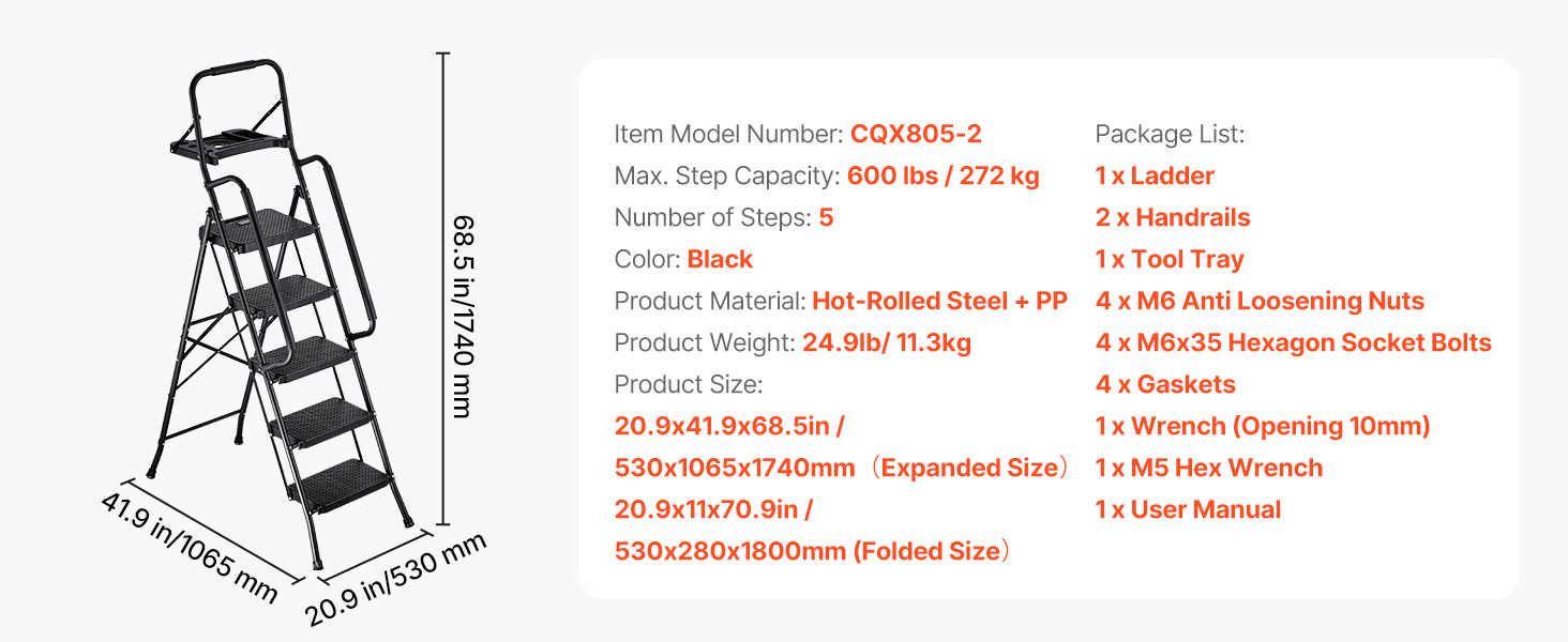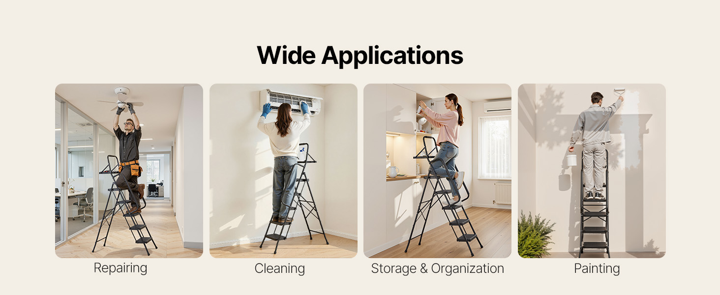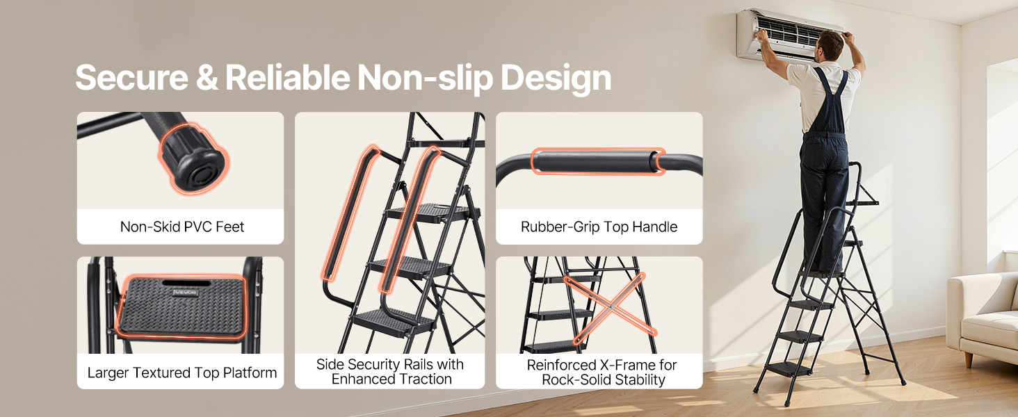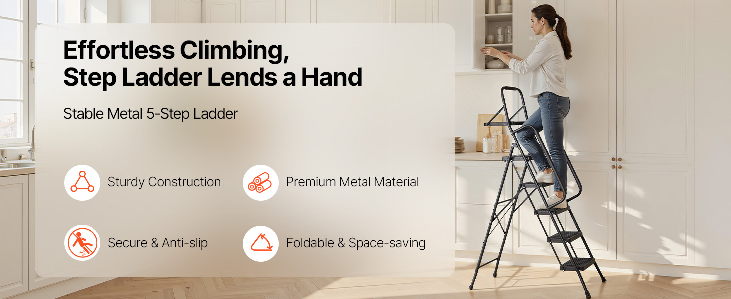 Tento kompaktný rebrík je vhodný na domáce opravy, upratovanie a organizovanie a poskytuje stabilnú, protišmykovú oporu, vďaka čomu sa ľahko dostanete do vysokých miest.