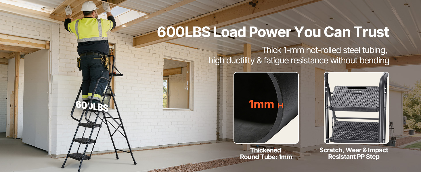 Tento odolný rebrík si zaslúži vašu dôveru. Je navrhnutý tak, aby uniesol zaťaženie až 600 libier, pričom si zachováva konštrukčnú stabilitu a odolnosť voči deformácii pri dlhodobom používaní.