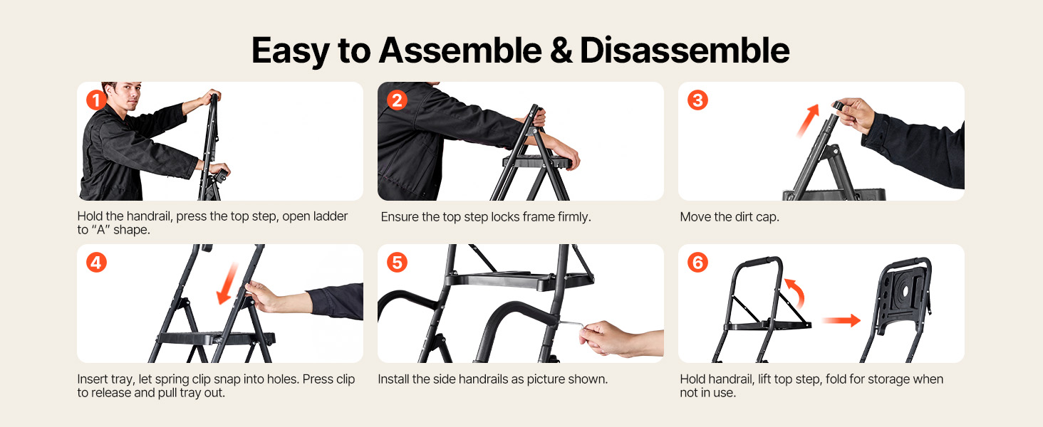 Tento kuchynský rebrík je vybavený nadrozmernými protiskluzovými madlami a protiskluzovými nožičkami. Je navrhnutý tak, aby bol stabilný, a má tenký skladací dizajn pre jednoduché skladovanie. Pracujte rýchlejšie a s istotou pri čistení, maľovaní a inštalácii.
