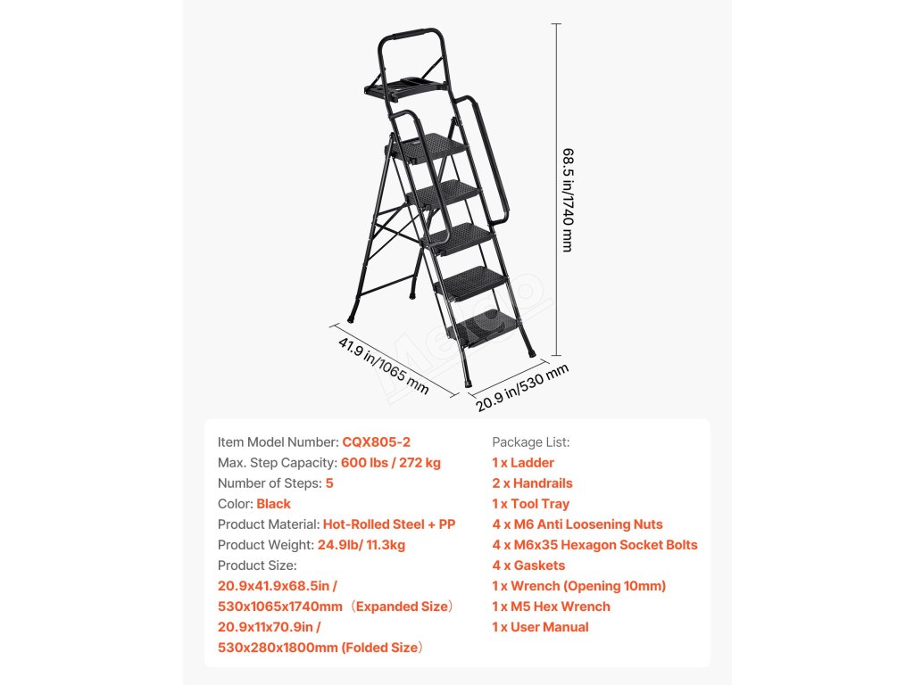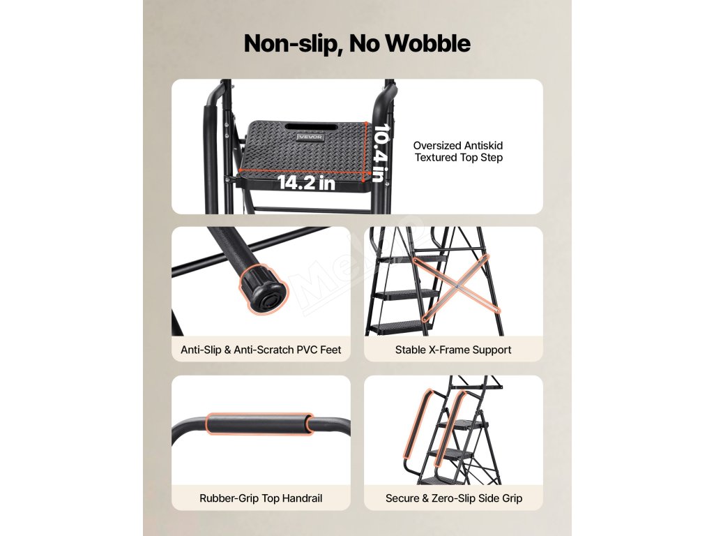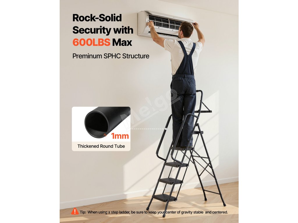 Tento kompaktný rebrík je vhodný na domáce opravy, upratovanie a organizovanie a poskytuje stabilnú, protišmykovú oporu, vďaka čomu sa ľahko dostanete do vysokých miest.