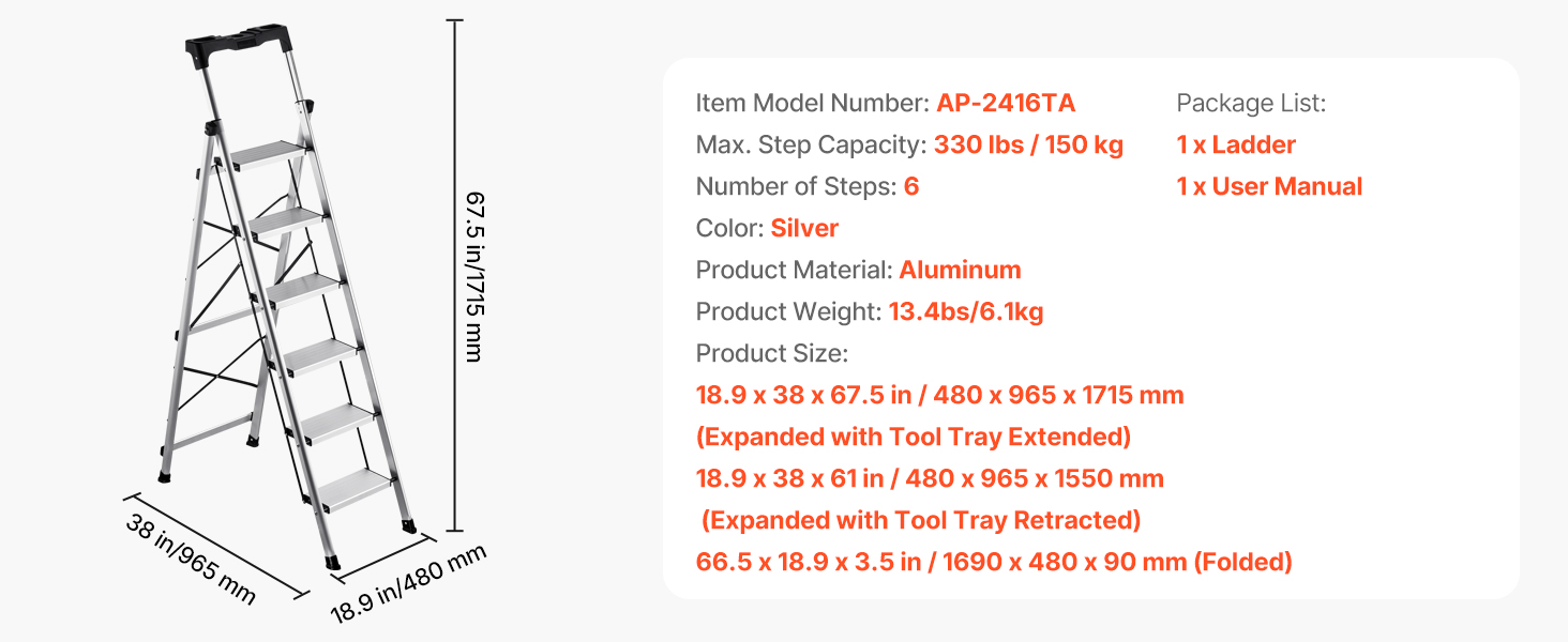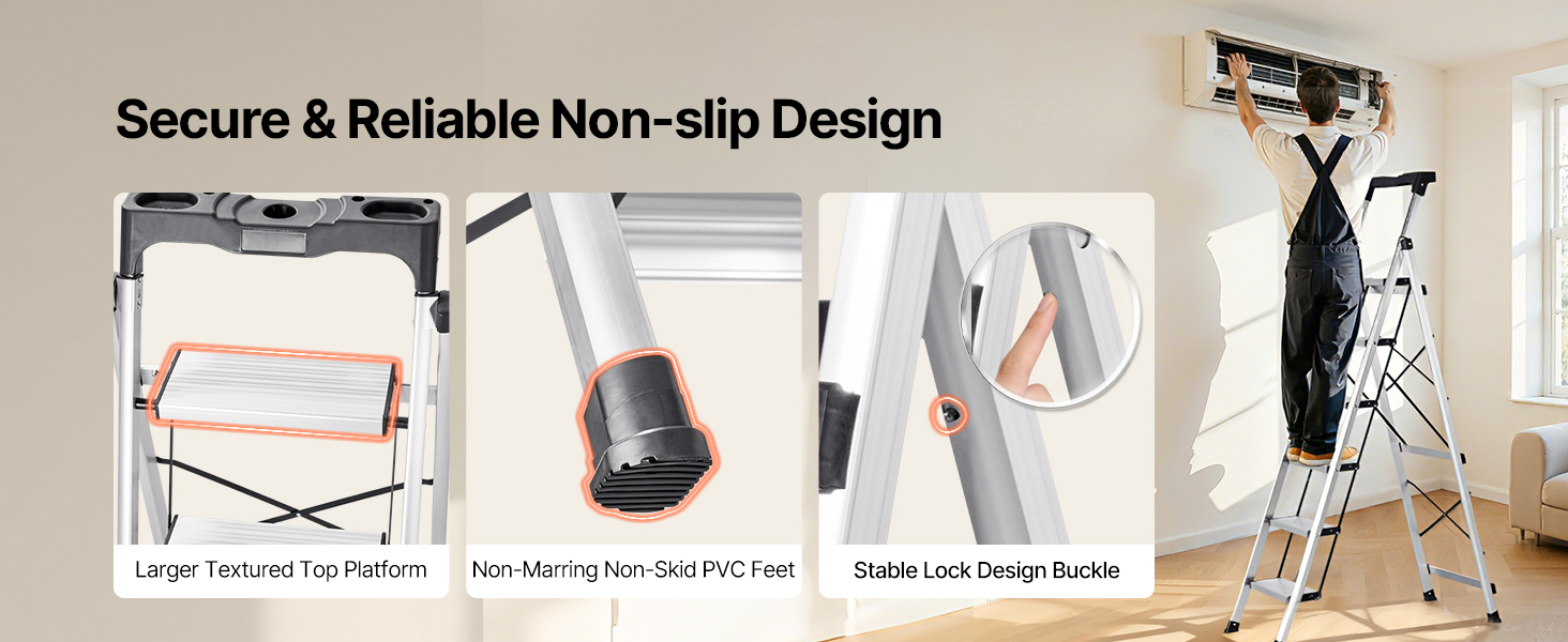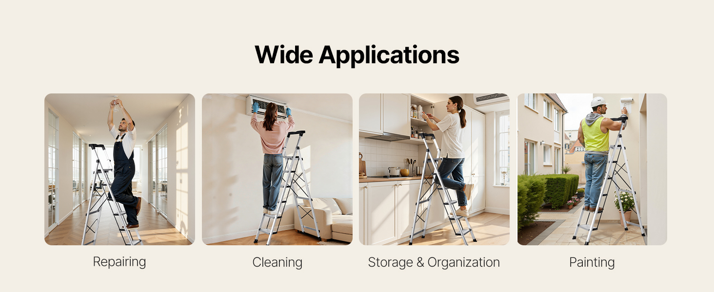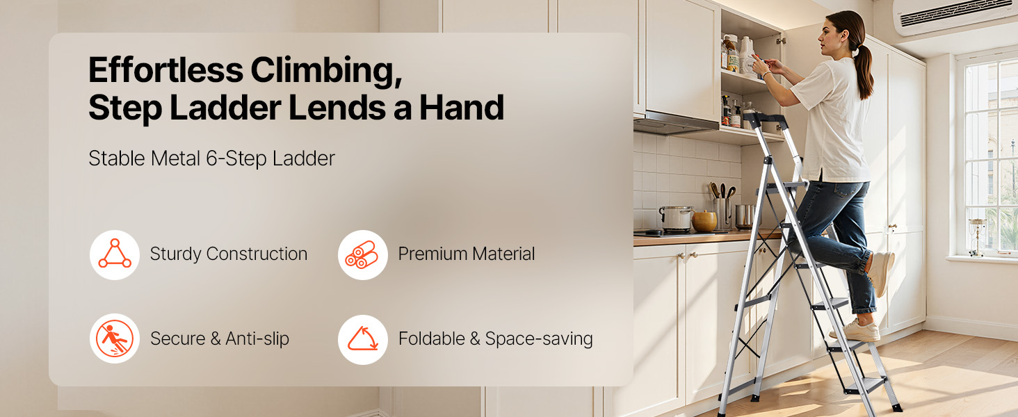 Tento kompaktný rebrík je vhodný na domáce opravy, upratovanie a organizovanie a poskytuje stabilnú, protišmykovú oporu, vďaka čomu sa ľahko dostanete do vysokých priestorov.