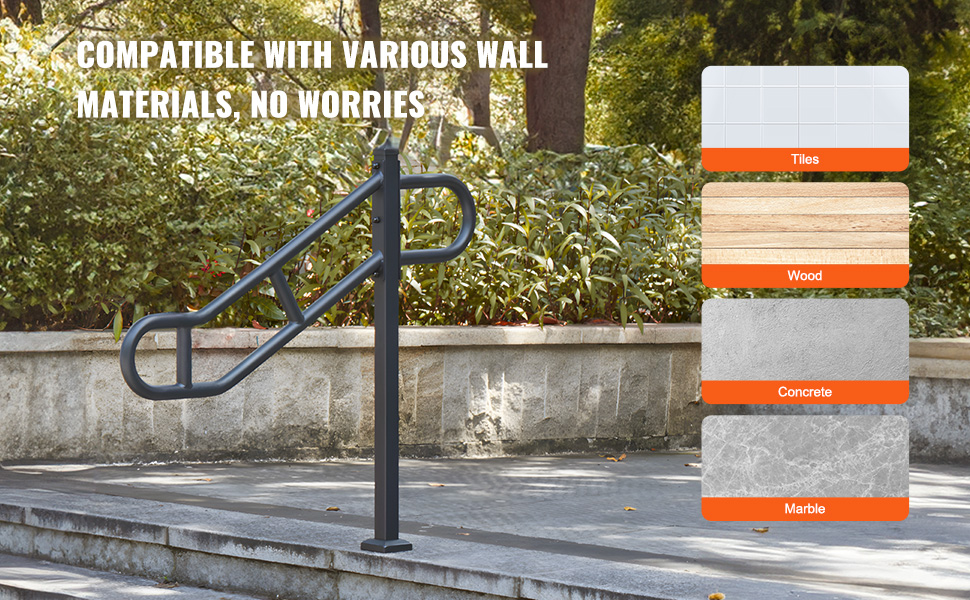 Toto vonkajšie zábradlie na stenu je vhodné na rôzne materiály stien vrátane obkladov, dreva, betónu a mramoru, vďaka čomu je veľmi univerzálne.