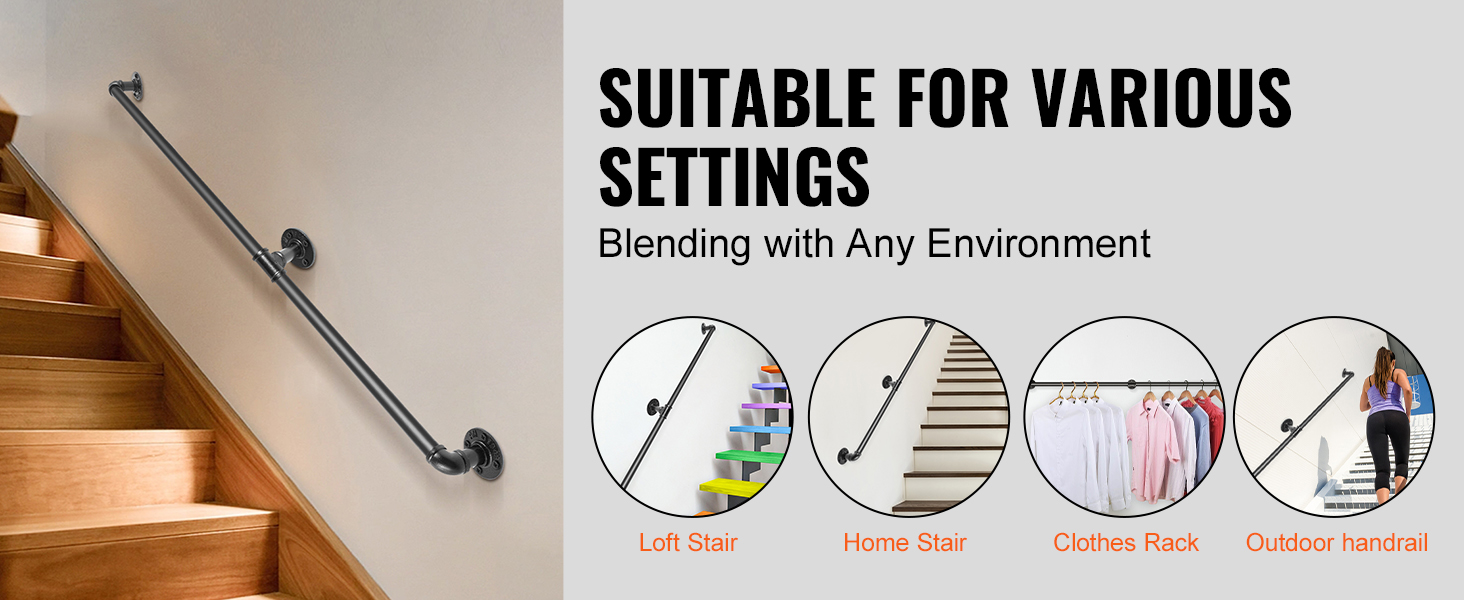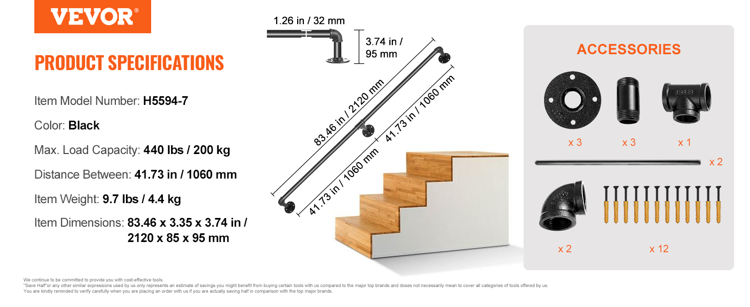 Zábradlie na schody z oceľovej rúry 213,4 cm, nosnosť 199,6 kg