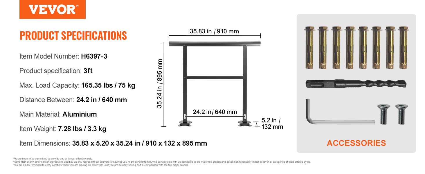 Vonkajšie zábradlie 74.8 kg hliník 91.4×88.9 cm 0–50° 2–3 stup.