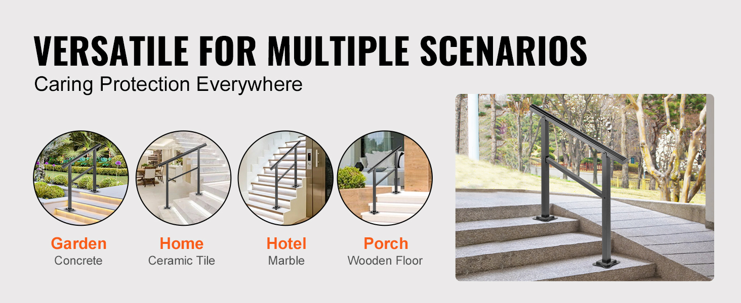 Vonkajšie zábradlie na schody je vhodné pre dom, záhradu, hotel, verandu a iné miesta so schodmi alebo schodíkmi. Slúži ako opora na zvýšenie bezpečnosti a pohodlia.