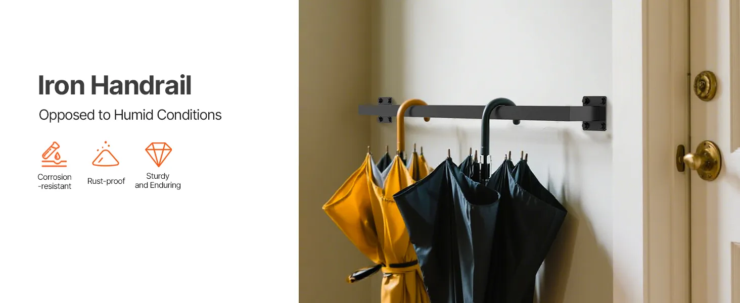 Naše nástenné zábradlie poskytuje dlhodobú a stabilnú oporu pre spoľahlivé používanie schodov. Okrem toho ho možno nainštalovať do kuchýň, šatníkov a obývacích izieb, aby slúžilo ako praktický držiak na riad, oblečenie a záclony.