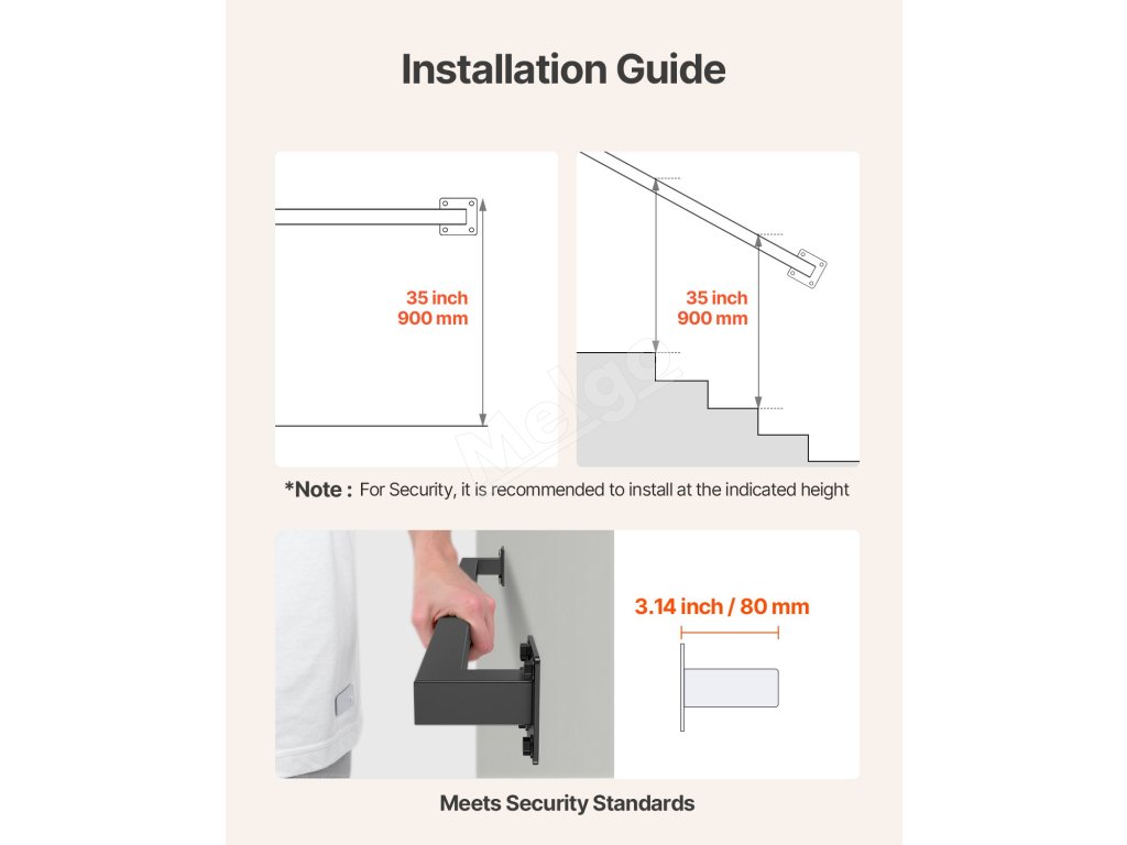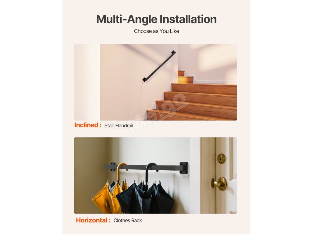 Naše nástenné zábradlie poskytuje dlhodobú a stabilnú oporu pre spoľahlivé používanie schodov. Okrem toho ho možno nainštalovať do kuchýň, šatníkov a obývacích izieb, aby slúžilo ako praktický držiak na riad, oblečenie a záclony.