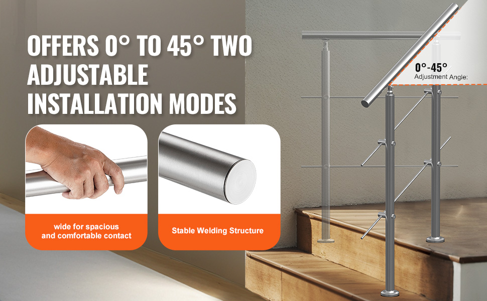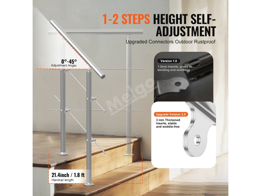 Uhol zábradlia sa dá nastaviť podľa počtu schodiskových stupňov, takže sa dá prispôsobiť požiadavkám vášho schodiska.