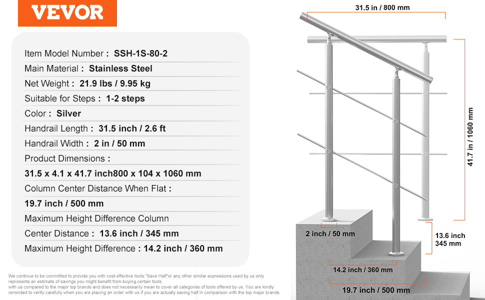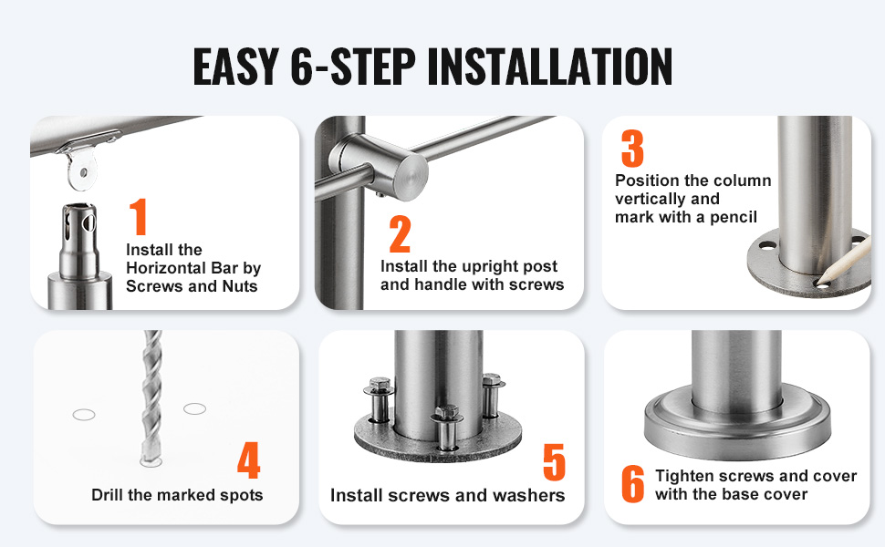 Spoľahlivé stĺpikové zábradlie VEVOR z nehrdzavejúcej ocele