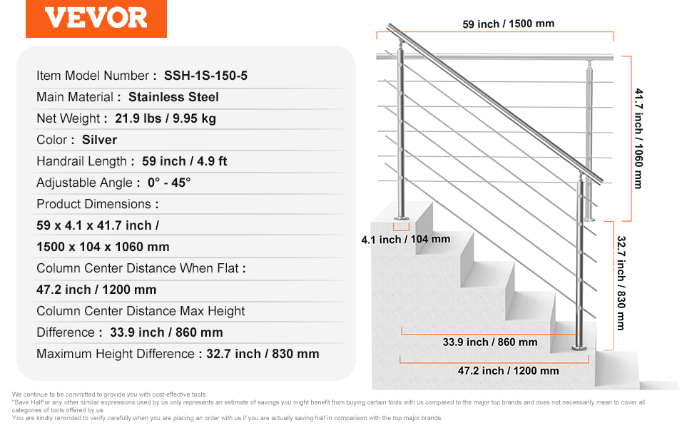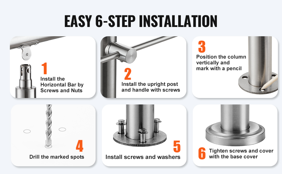 Spoľahlivé stĺpikové zábradlie VEVOR z nehrdzavejúcej ocele