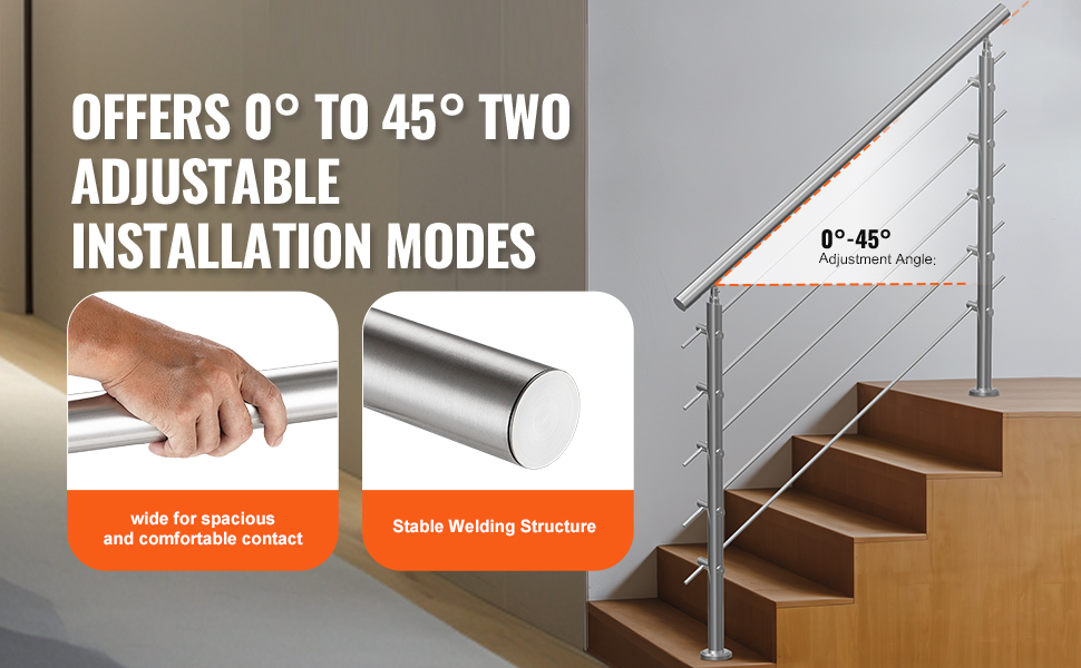 Uhol zábradlia sa dá nastaviť podľa počtu schodiskových stupňov, takže sa dá prispôsobiť požiadavkám vášho schodiska.