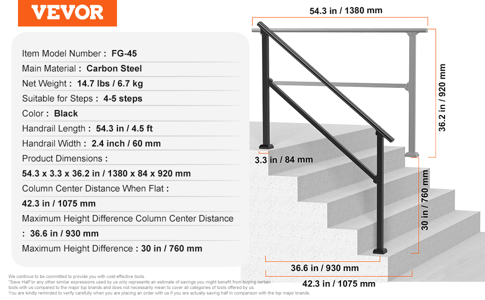 | Šírka zábradlia | 2.4 palce / 60 mm |