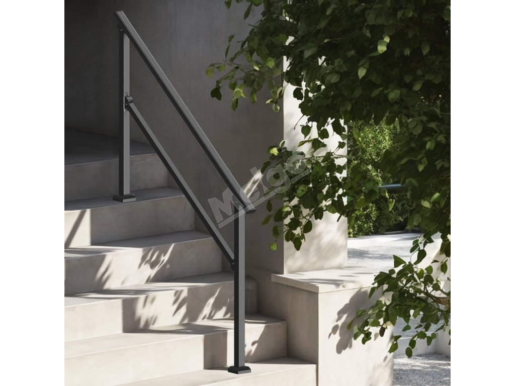 Zábradlie na vonkajšie 4–5 stupňové schody, oceľ, čierne, inštal. sada