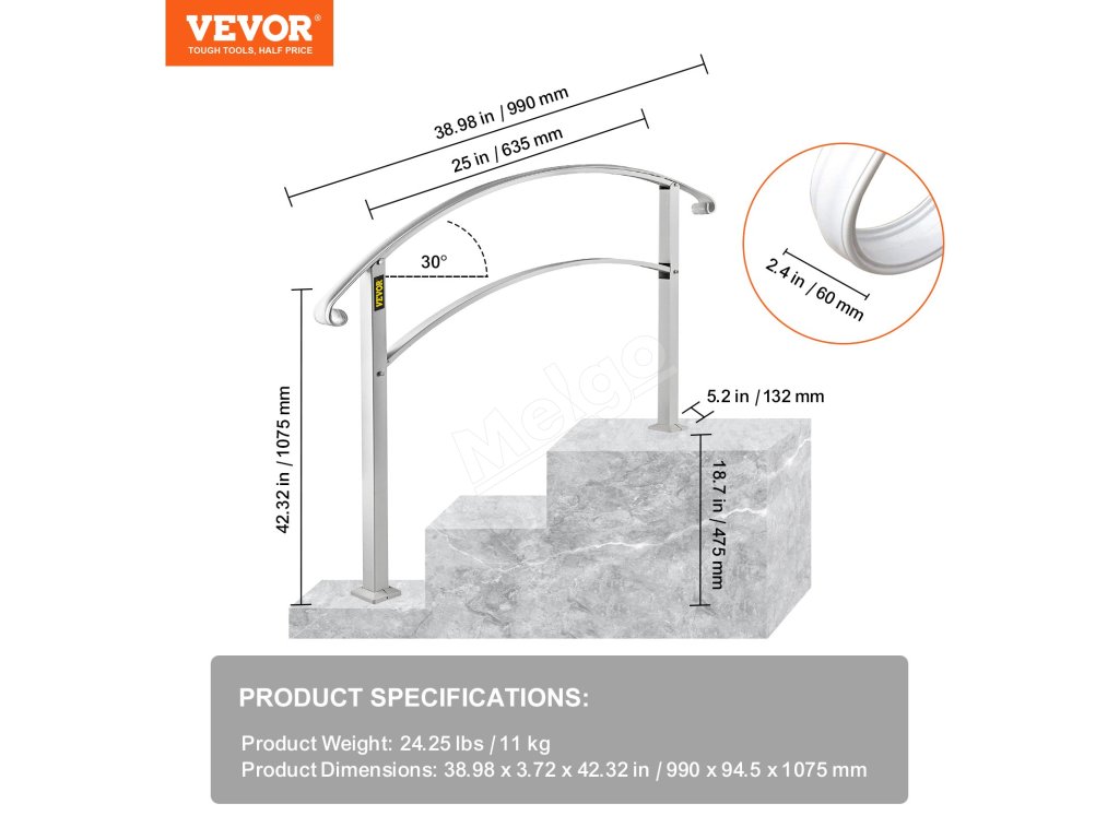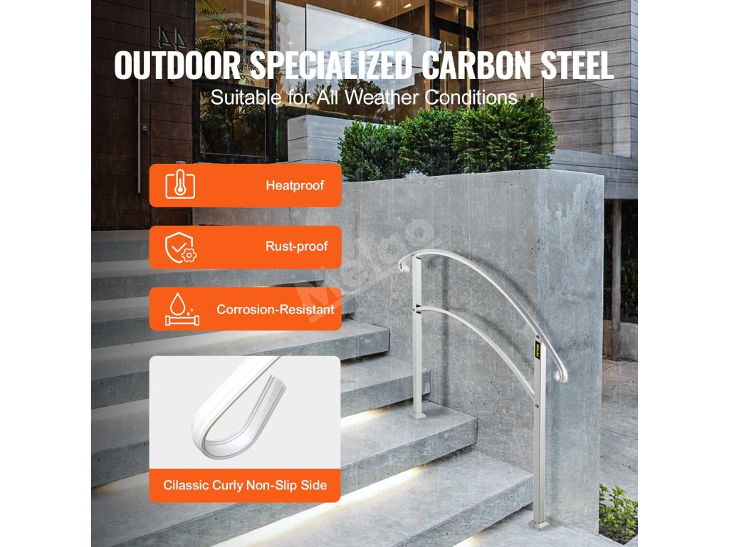 Vonkajšie zábradlie na schody je vhodné pre dom, záhradu, hotel, verandu a iné miesta so schodmi alebo schodíkmi. Slúži ako opora na zvýšenie bezpečnosti a pohodlia.