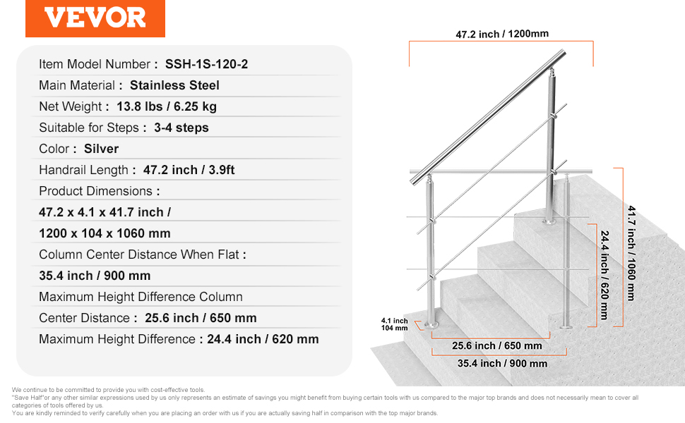 Spoľahlivé stĺpikové zábradlie VEVOR z nehrdzavejúcej ocele