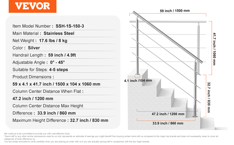 Spoľahlivé stĺpikové zábradlie VEVOR z nehrdzavejúcej ocele