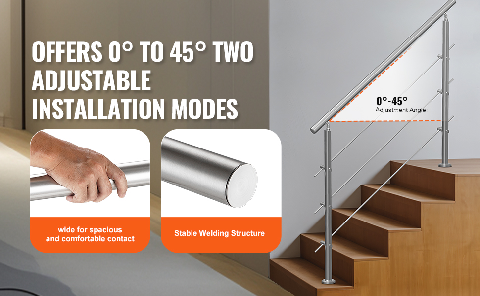 Uhol zábradlia sa dá nastaviť podľa počtu schodiskových stupňov, takže sa dá prispôsobiť požiadavkám vášho schodiska.