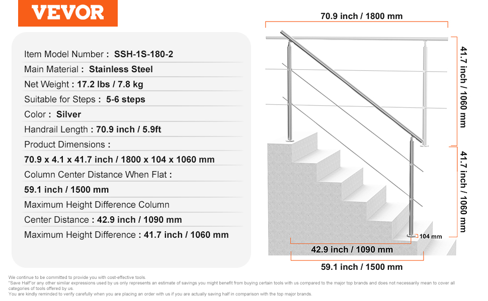 Spoľahlivé stĺpikové zábradlie VEVOR z nehrdzavejúcej ocele