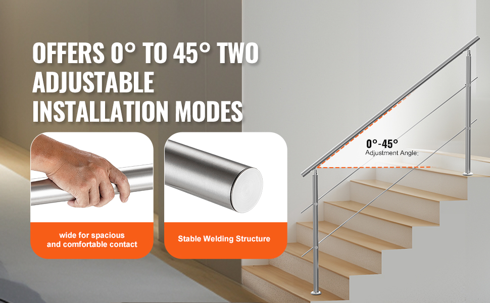 Uhol zábradlia sa dá nastaviť podľa počtu schodiskových stupňov, takže sa dá prispôsobiť požiadavkám vášho schodiska.