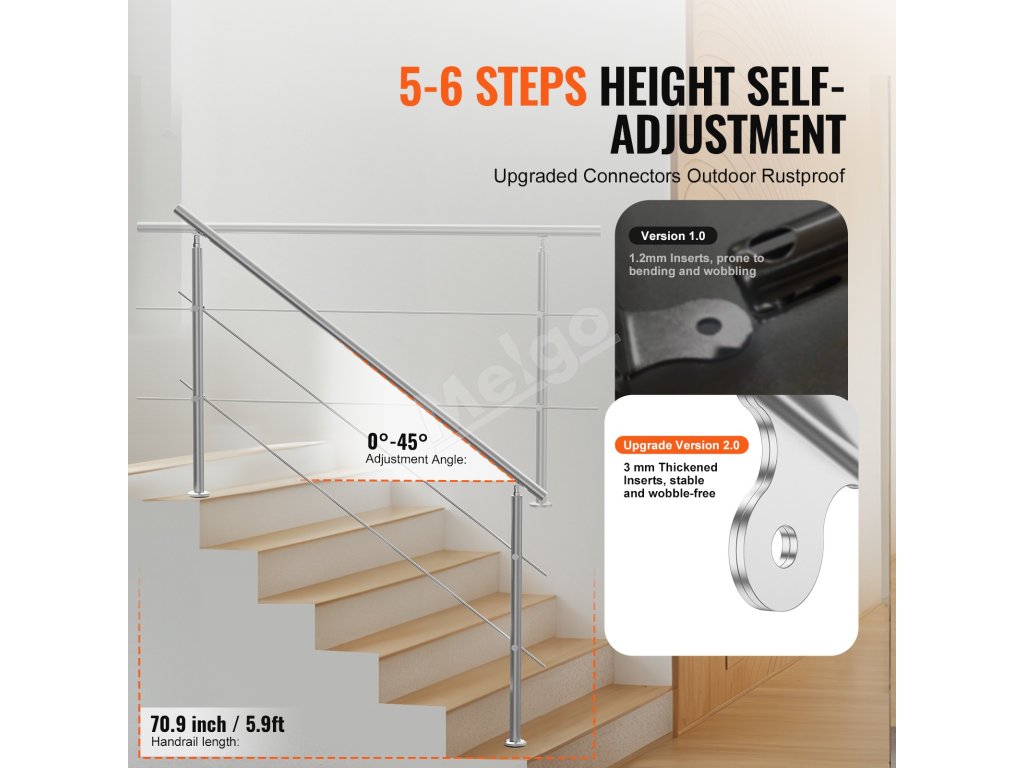 Uhol zábradlia sa dá nastaviť podľa počtu schodiskových stupňov, takže sa dá prispôsobiť požiadavkám vášho schodiska.