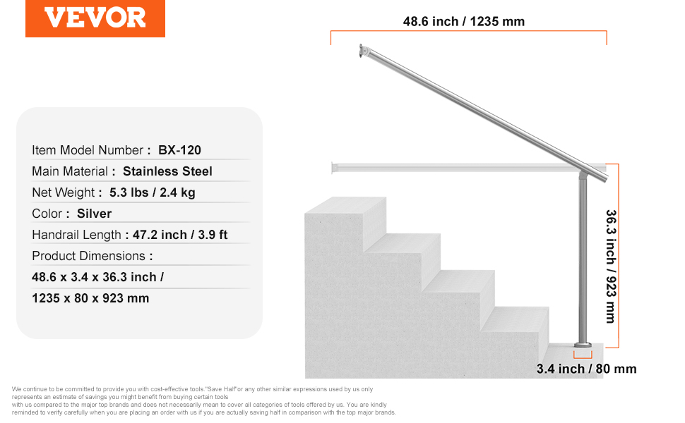 Zábradlie na vonkajšie schody 47.3in / 120cm, montáž stena/podlaha
