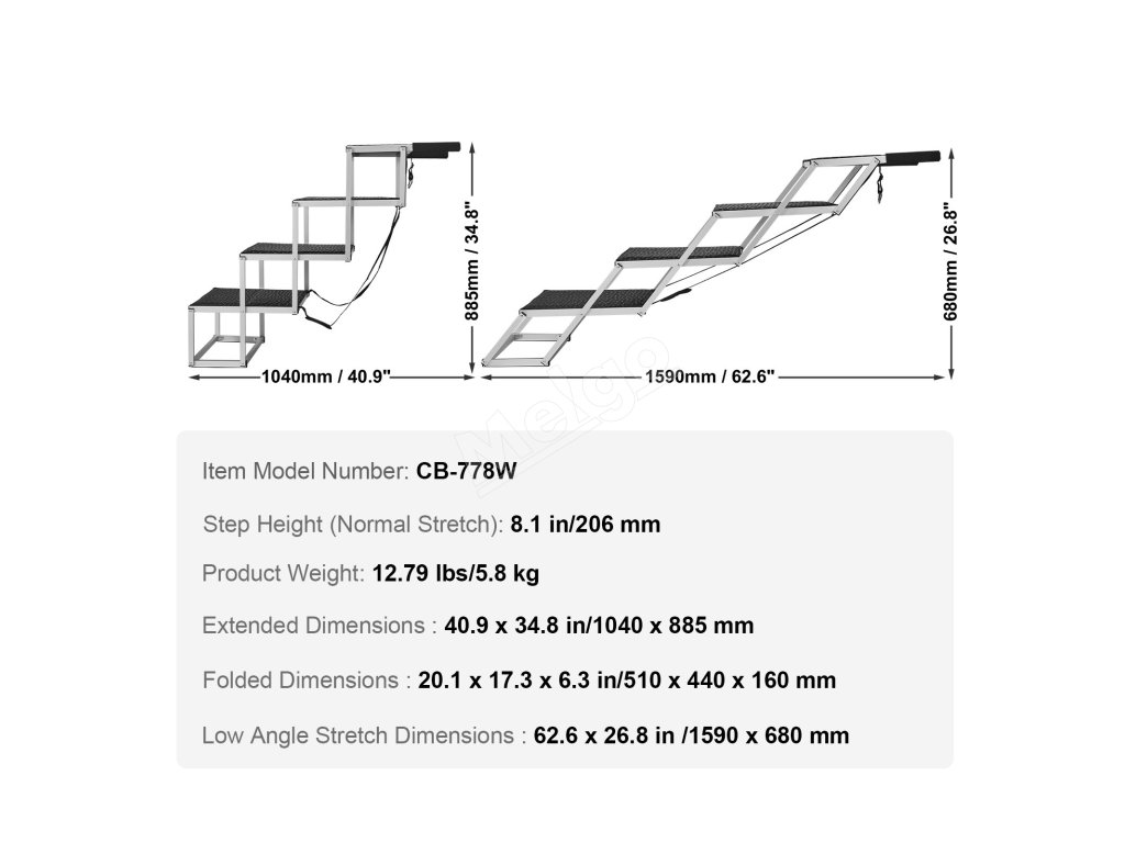 Vďaka nastaviteľnej výške sklápacieho schodíka pre domáce zvieratá je vhodný pre mačky a psy rôznych veľkostí a je užitočný v rôznych situáciách.
