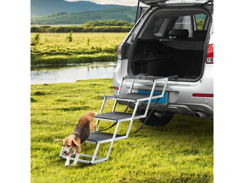 Psie schody do auta 4-stupňové zložiteľné hliníkové nosnosť 113.4 kg