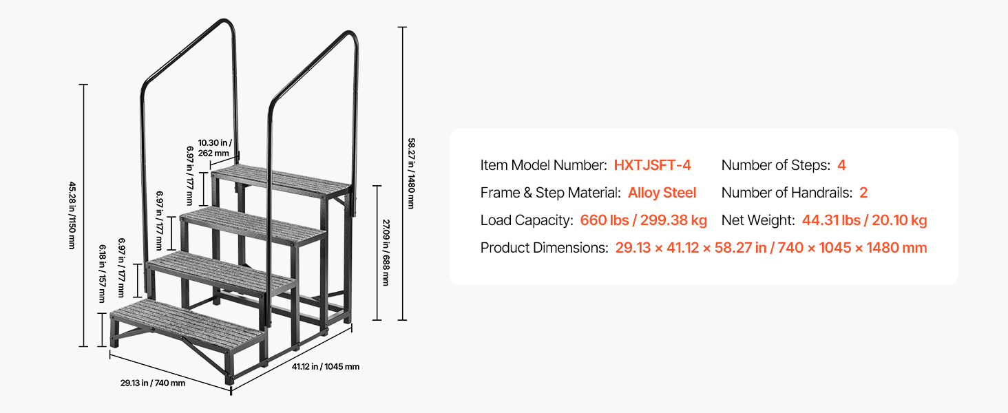 Tieto schody sú vyrobené z odolných materiálov a majú vystuženú konštrukciu, unesú až 660 libier / 299,38 kg a pojmú 3–4 osoby stojace súčasne.