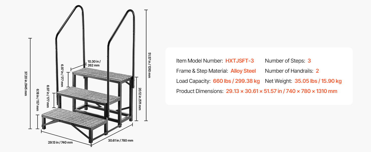 Tieto schody sú vyrobené z odolných materiálov a majú vystuženú konštrukciu, unesú až 660 libier / 299,38 kg a pojmú 3–4 osoby stojace na nich súčasne.