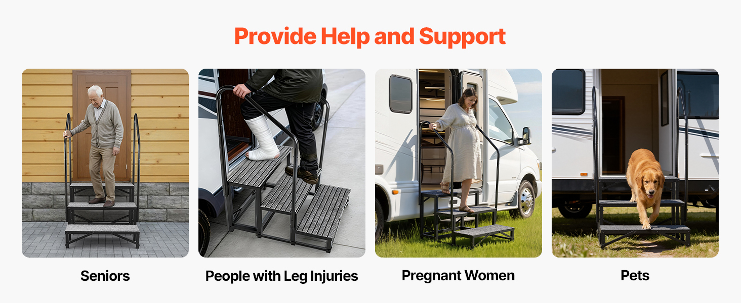 Fungujú ako schody do karavanu, schody do vírivky, schody do domu a schody do bazéna. Pomáhajú seniorom, ľuďom s poraneniami kolien, tehotným ženám a deťom ľahko stúpať a schádzať po schodoch.