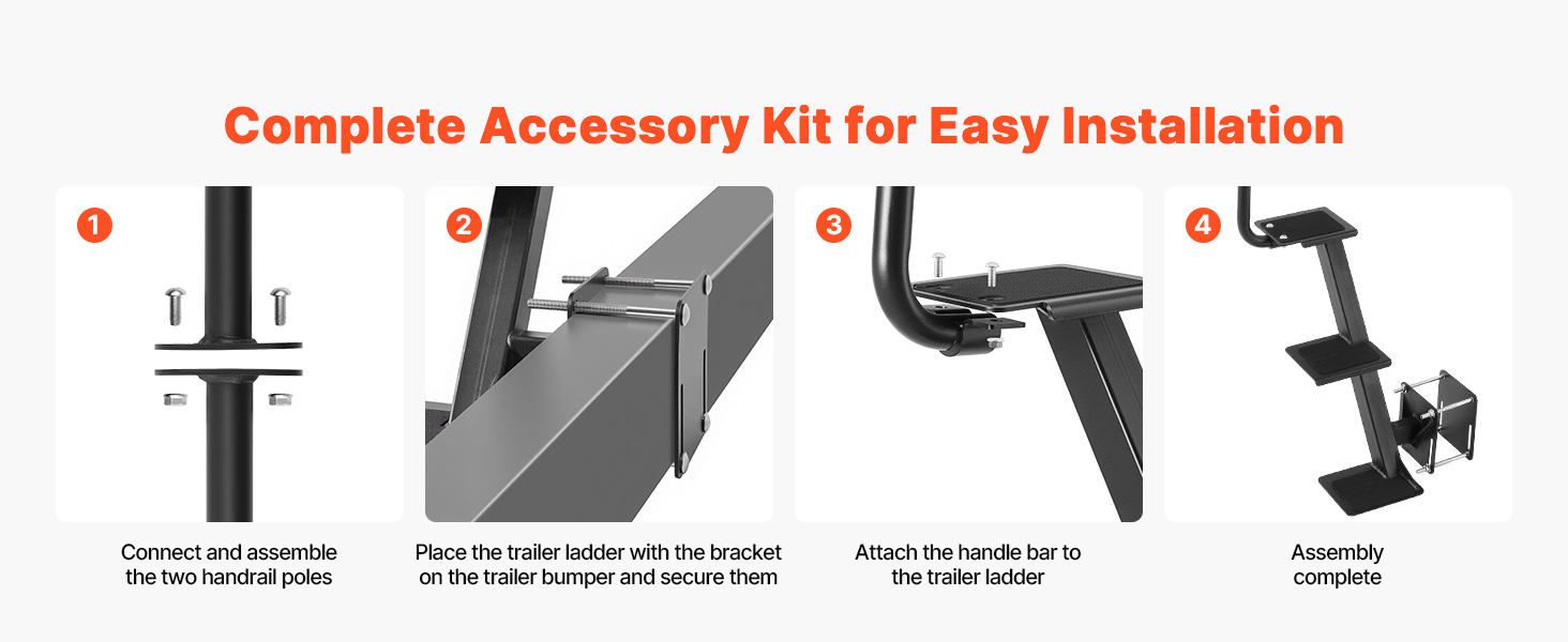 Naše schodíky na ťažné zariadenie lodného prívesu sa dajú namontovať bez zložitých nástrojov alebo úprav a celý proces inštalácie je jednoduchý. Pred nákupom skontrolujte rozmery a inštalačné pokyny, aby ste sa uistili, že sú vhodné pre váš príves.