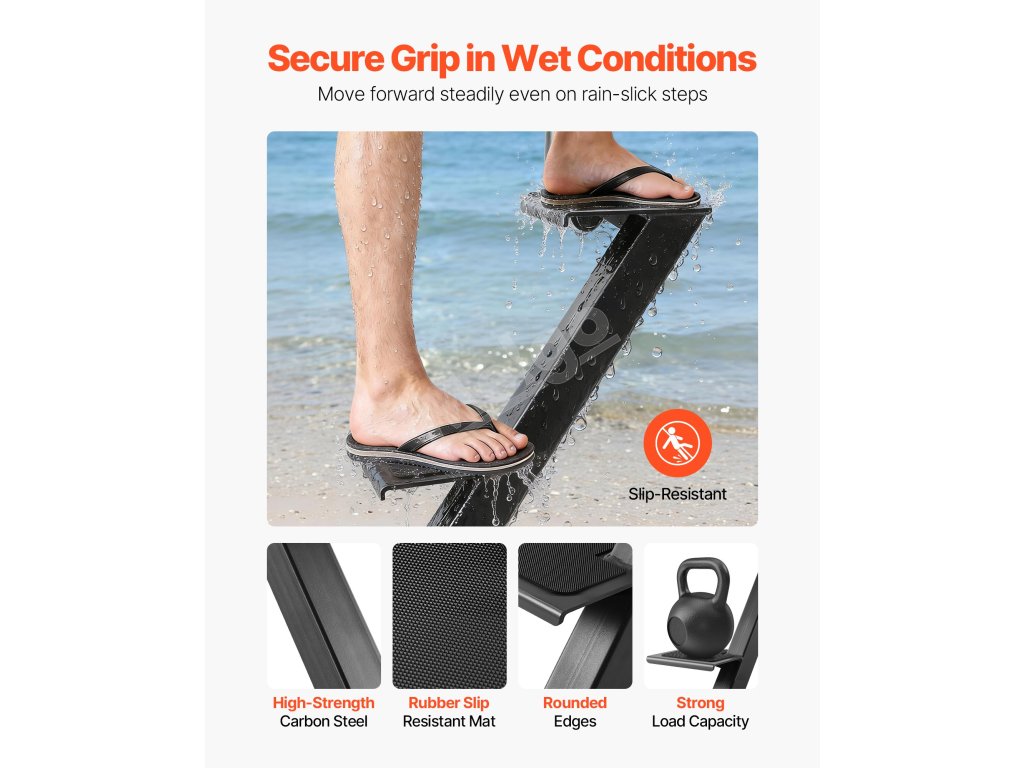 Inštalačný uhol 55° a trojuholníková konštrukcia zaisťujú stabilitu a žiadne kolísanie, zatiaľ čo uhlíková oceľ odolná proti korózii zaisťuje dlhodobú a spoľahlivú nosnosť. Tieto schody na príves pre člny vám umožnia vždy stabilne a bezpečne nastúpiť do člna.