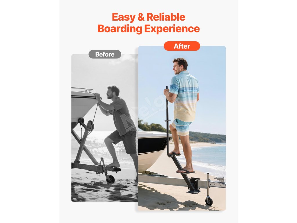Naše schodíky na ťažné zariadenie lodného prívesu sa dajú namontovať bez zložitých nástrojov alebo úprav a celý proces inštalácie je jednoduchý. Pred nákupom skontrolujte rozmery a inštalačné pokyny, aby ste sa uistili, že sú vhodné pre váš príves.
