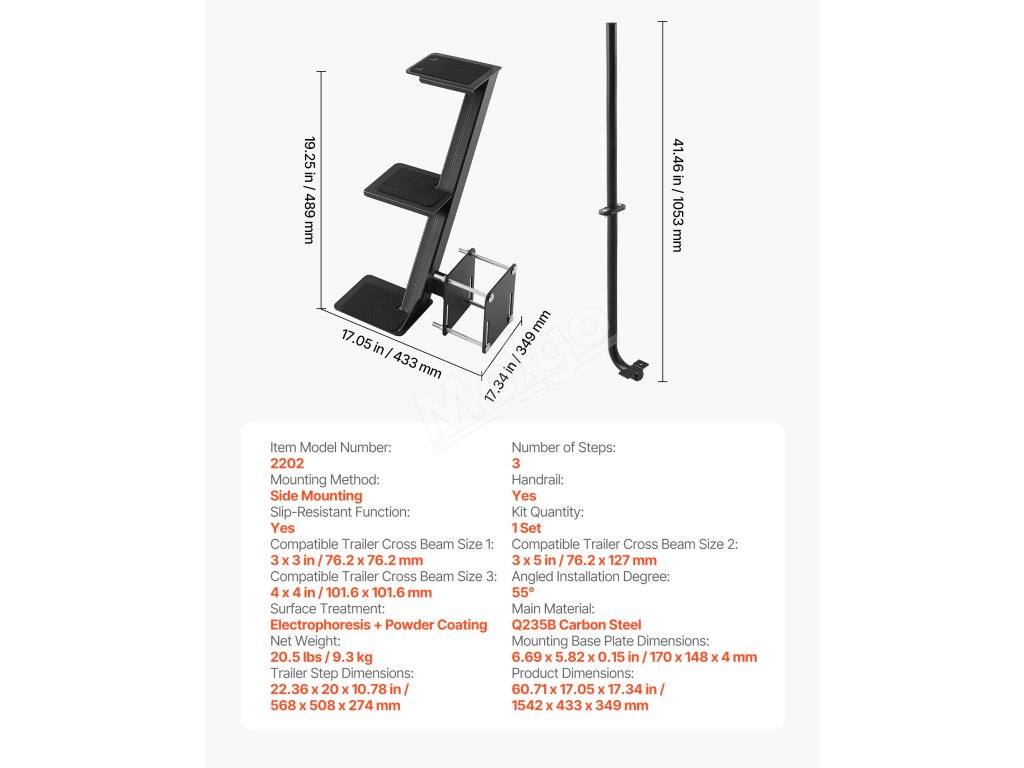 | Rozmery schodíka prívesu | 22,36 x 20 x 10,78 palca / 568 x 508 x 274 mm |