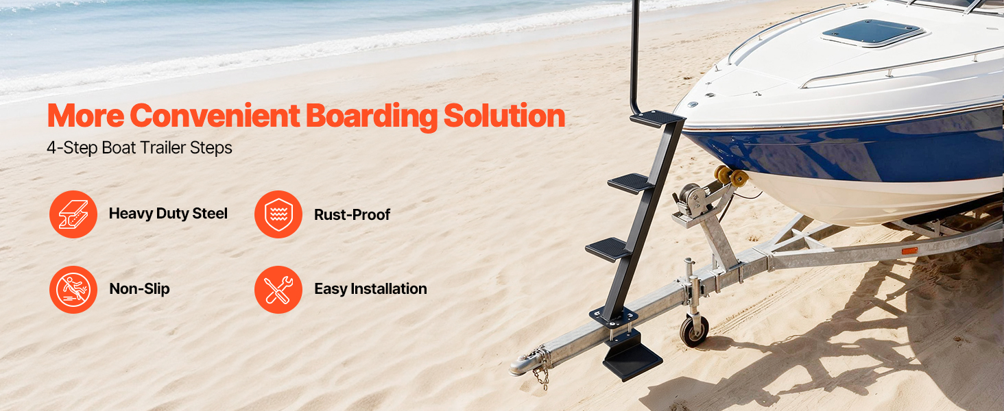 Naše schodíky na ťažné zariadenie lodného prívesu sa dajú namontovať bez zložitých nástrojov alebo úprav a celý proces inštalácie je jednoduchý. Pred nákupom skontrolujte rozmery a inštalačné pokyny, aby ste sa uistili, že sú vhodné pre váš príves.