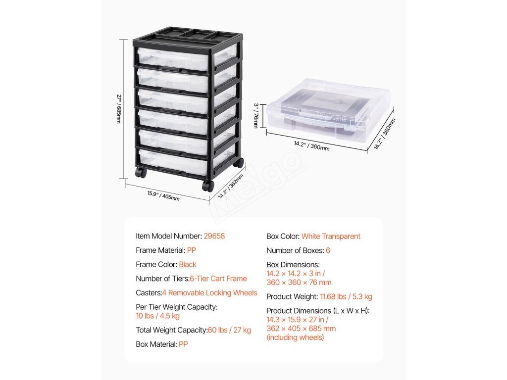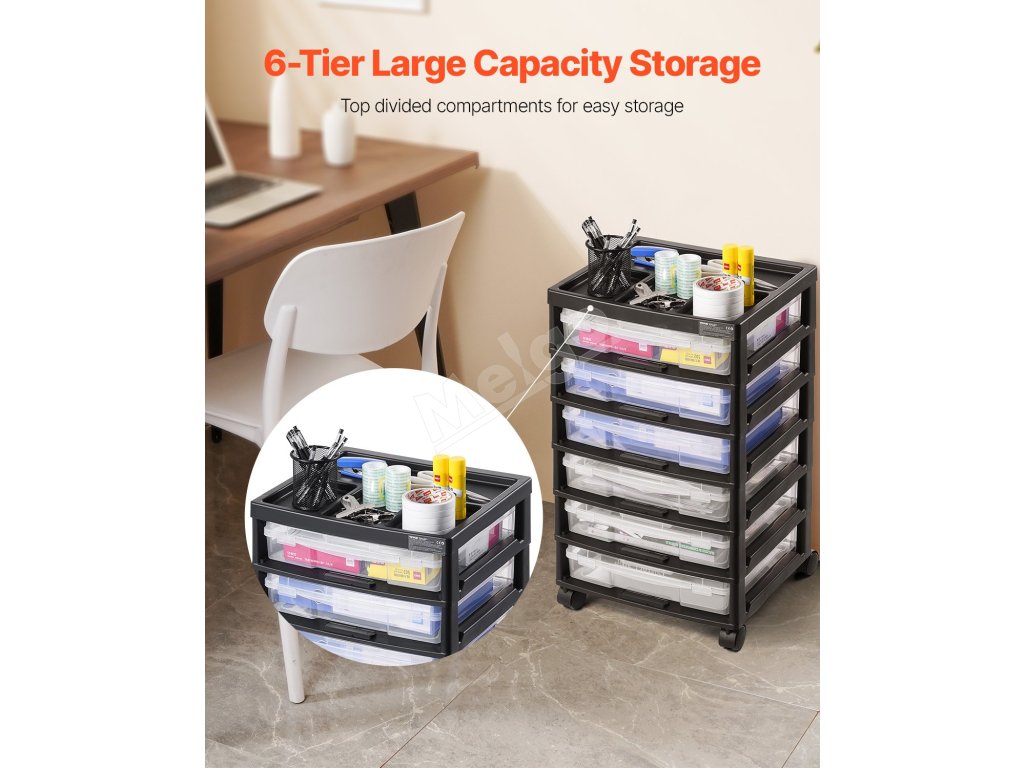 Tento 6-vrstvový viacúčelový úložný organizér na kolieskach so šiestimi samostatnými úložnými boxmi poskytuje dostatočnú kapacitu a mobilný dizajn, ktorý splní všetky vaše potreby v oblasti organizovania. Rozlúčte sa s neporiadkom a privítajte usporiadaný priestor.