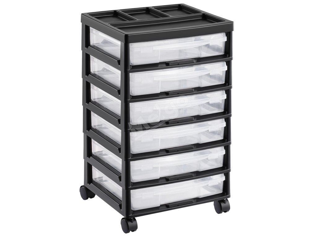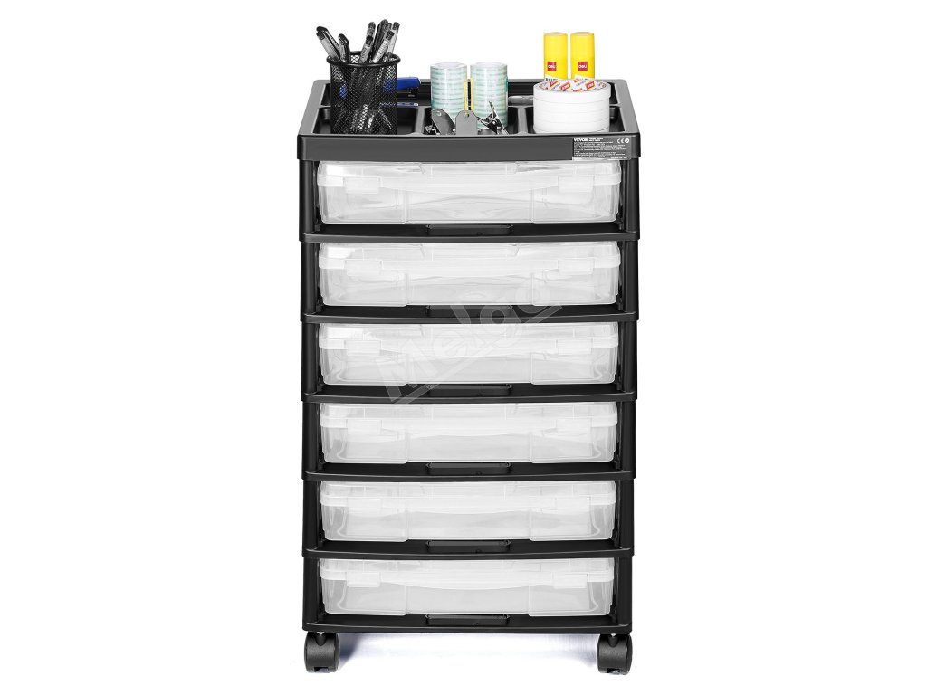 Ukladací vozík na tvorivé potreby, 6 zásuviek, organizér, 4 kolieska
