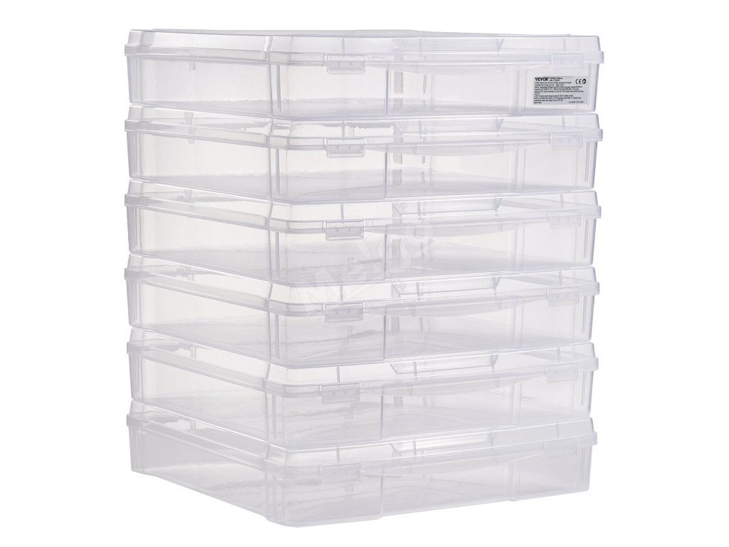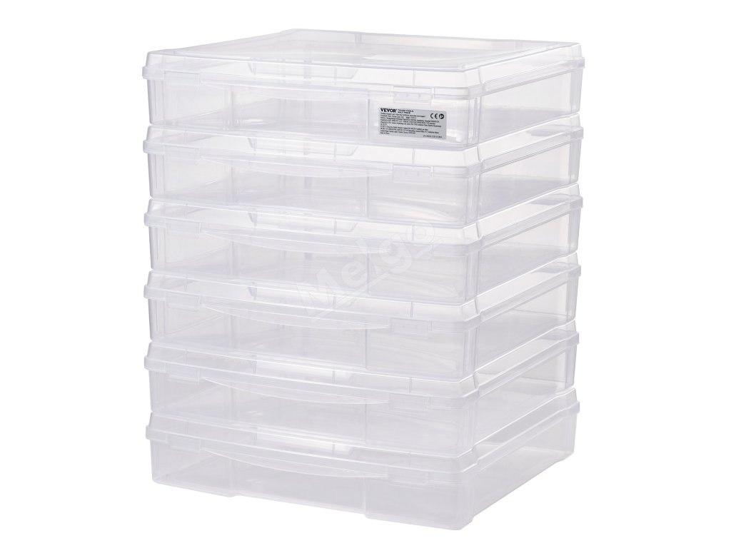 Úložné boxy na papier 6 ks, priehľadné, stohovateľné, zaoblené rohy