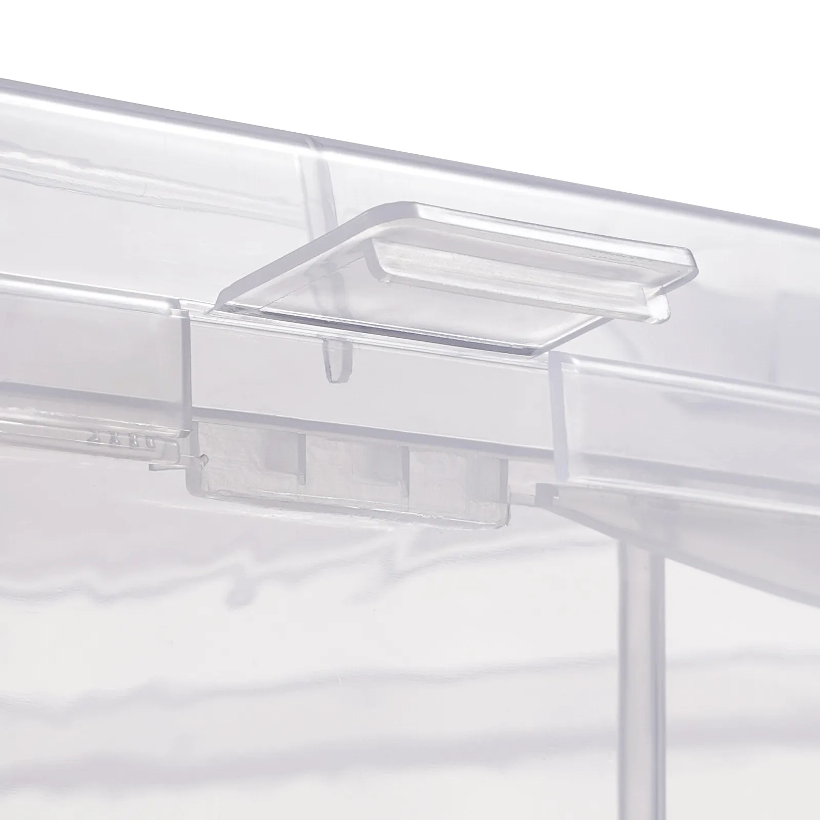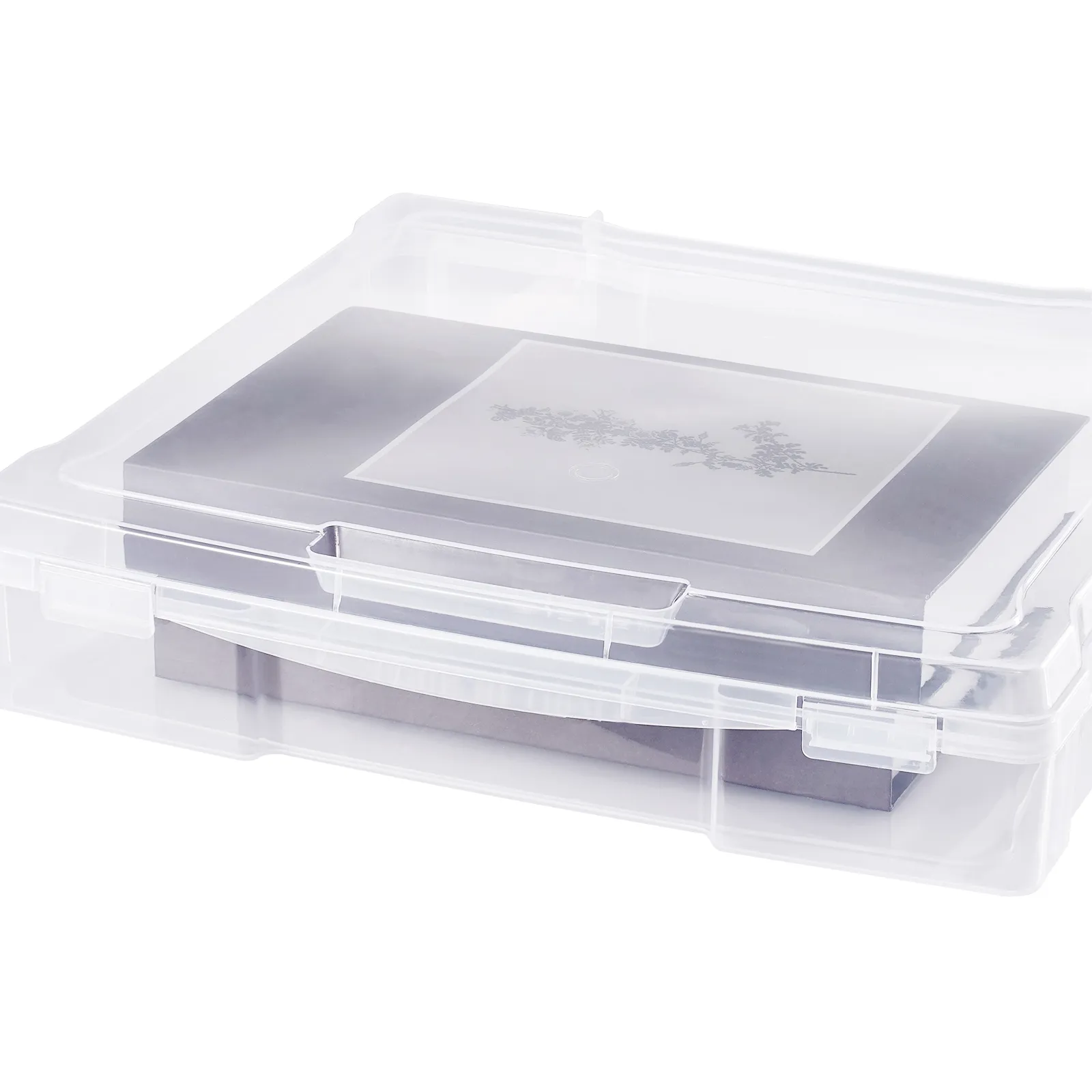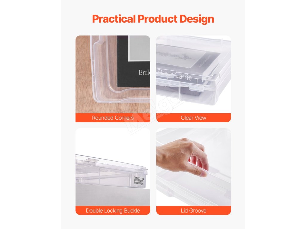 Puzdro na dokumenty je navrhnuté s ohľadom na praktickosť a má zaoblené rohy na bezpečné používanie. Dvojité západky zabraňujú náhodnému otvoreniu a zaisťujú bezpečnosť vašich predmetov. Priehľadný materiál poskytuje jasný prehľad o obsahu, zatiaľ čo drážka na veku uľahčuje otváranie a zatváranie.